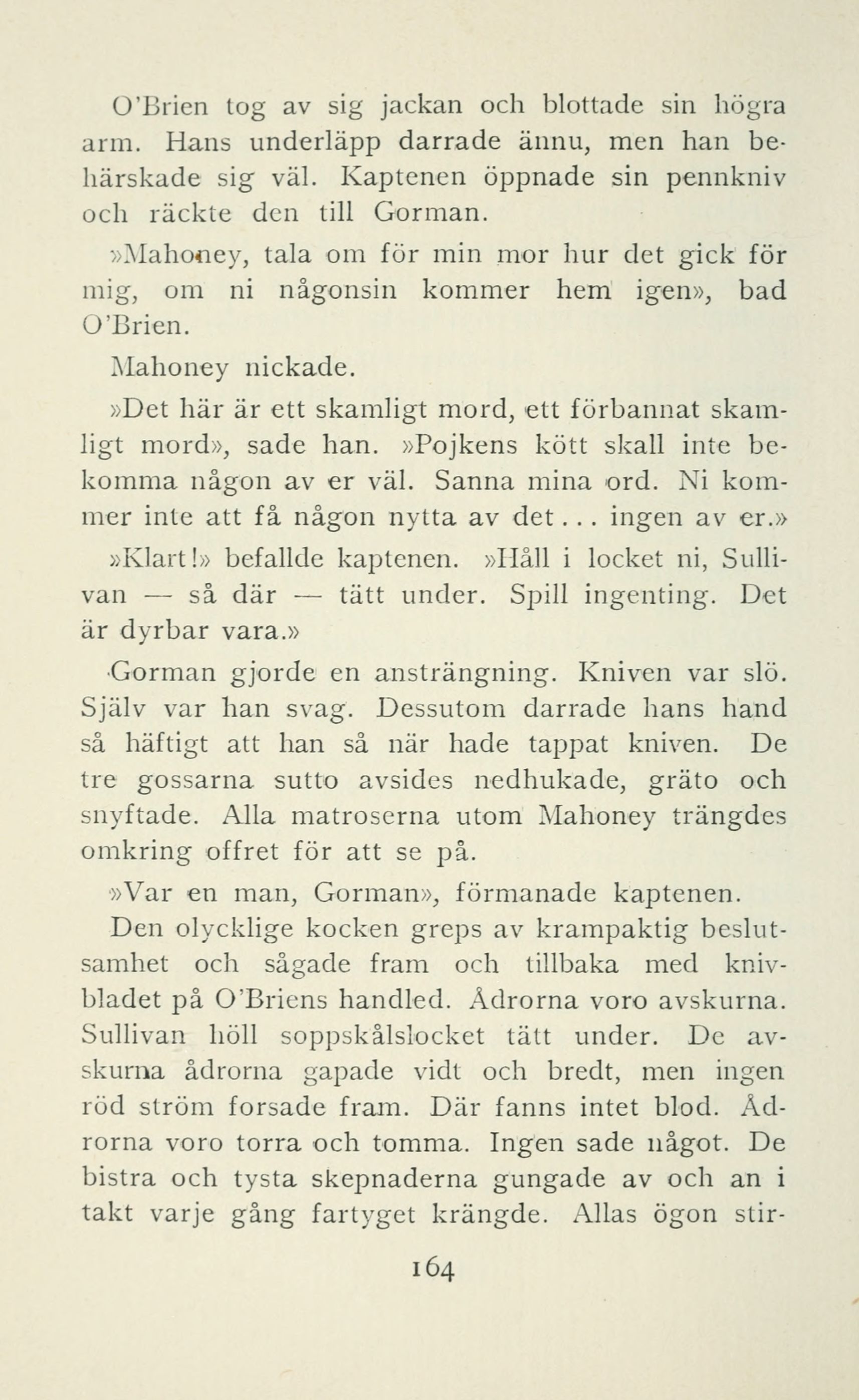 knivbladet på 0’Briens handled. Ådrorna voro avskurna.
