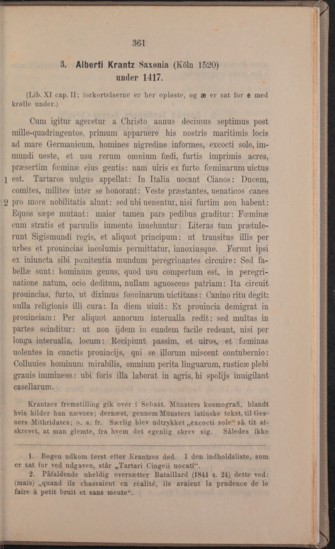 Full resolution (JPEG) - On this page / på denna sida - Vedhæng - A. om Sigenere eller Tatere - 3. Alberti Krantz Saxonia (Köln 1520) under 1417