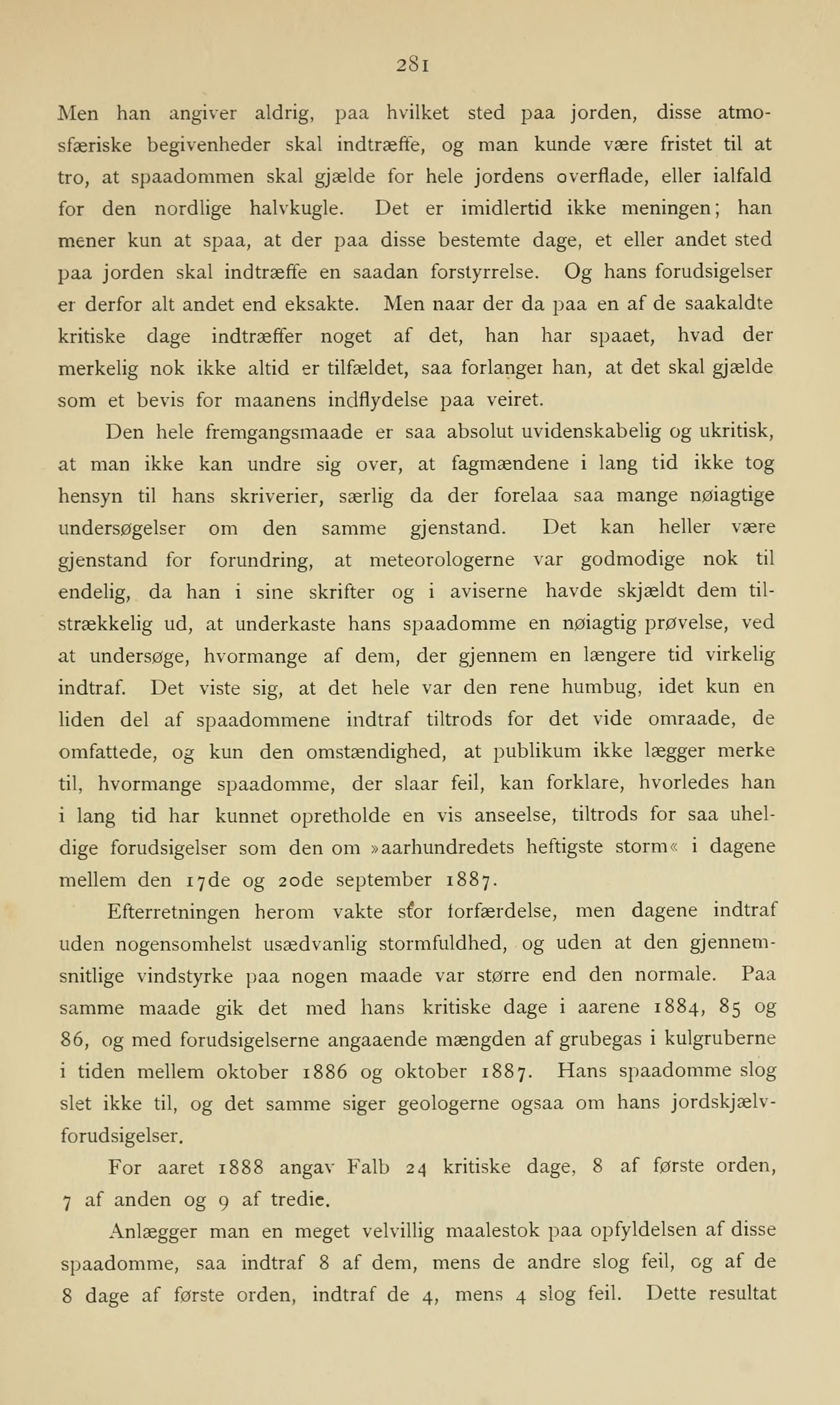 For aaret 1888 angav Falb 24 kritiske dage, 8 af første orden,