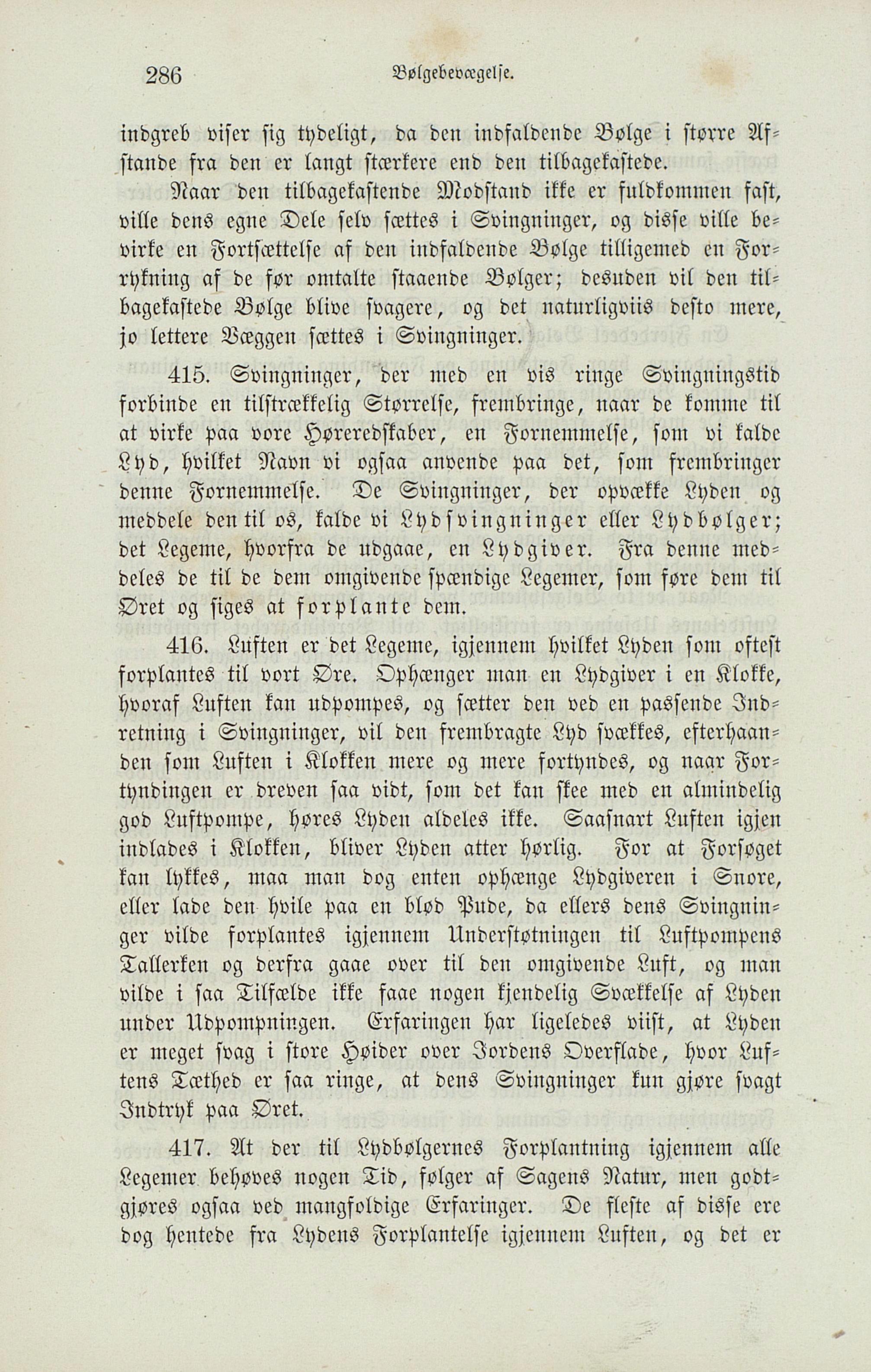 Full resolution (JPEG) - On this page / på denna sida - Bølgebevægelse i luftformige Legemer - 414. Tilbagekastning af Luftbølger - 415—416. Lyd - 417—418. Lydens Hastighed i Luften