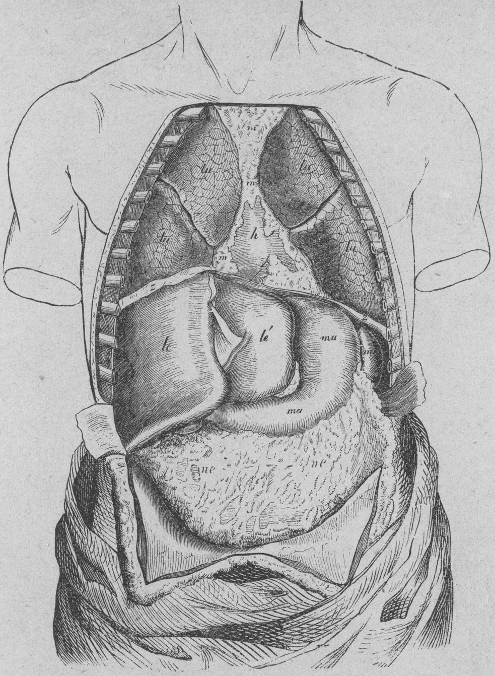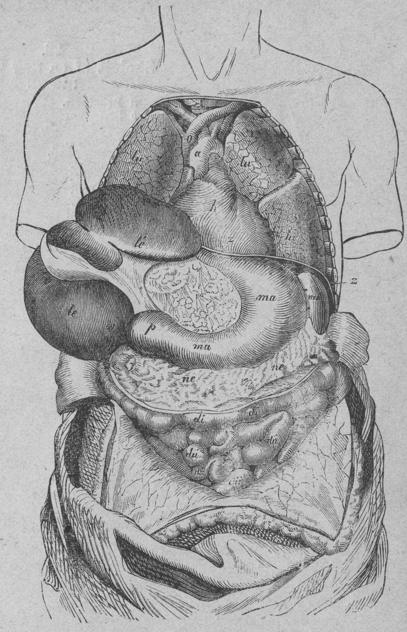 h Hjerta, omgifvet af hjertsäcken. | ma Magsäck. |