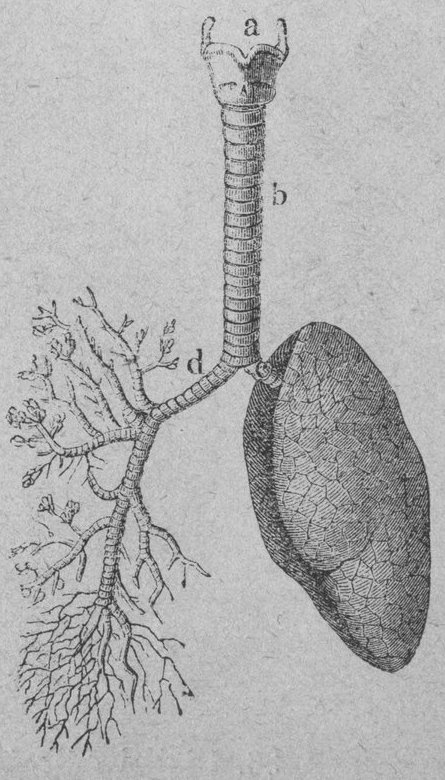b Luftstrupe. | d Högra bronkien. |