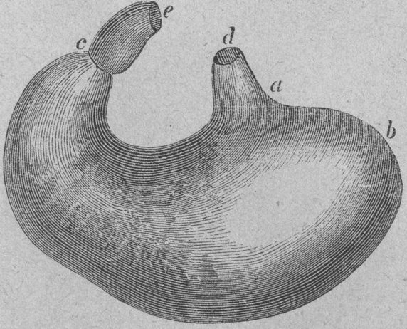b Magens stora böjning. | d Matstrupen. |