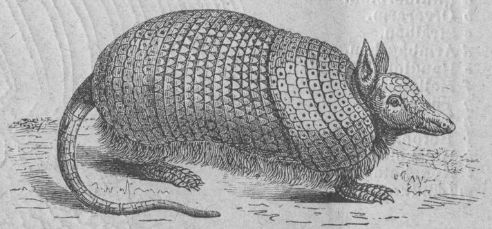129. Långsvansad bälta (Dásypus novemcínctus). Mejico, Sydamerikas nordöstra delar. 450 + 400mill. |