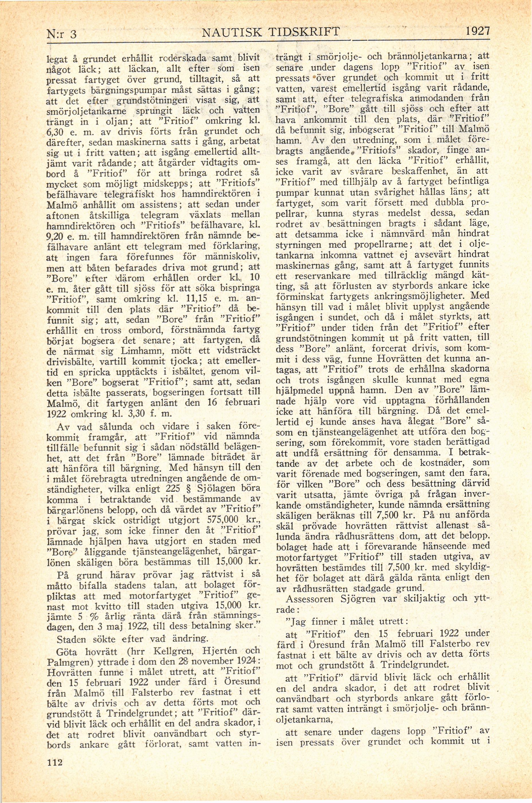 vilken "Bore" bogserat "Fritiof"; samt att, sedan