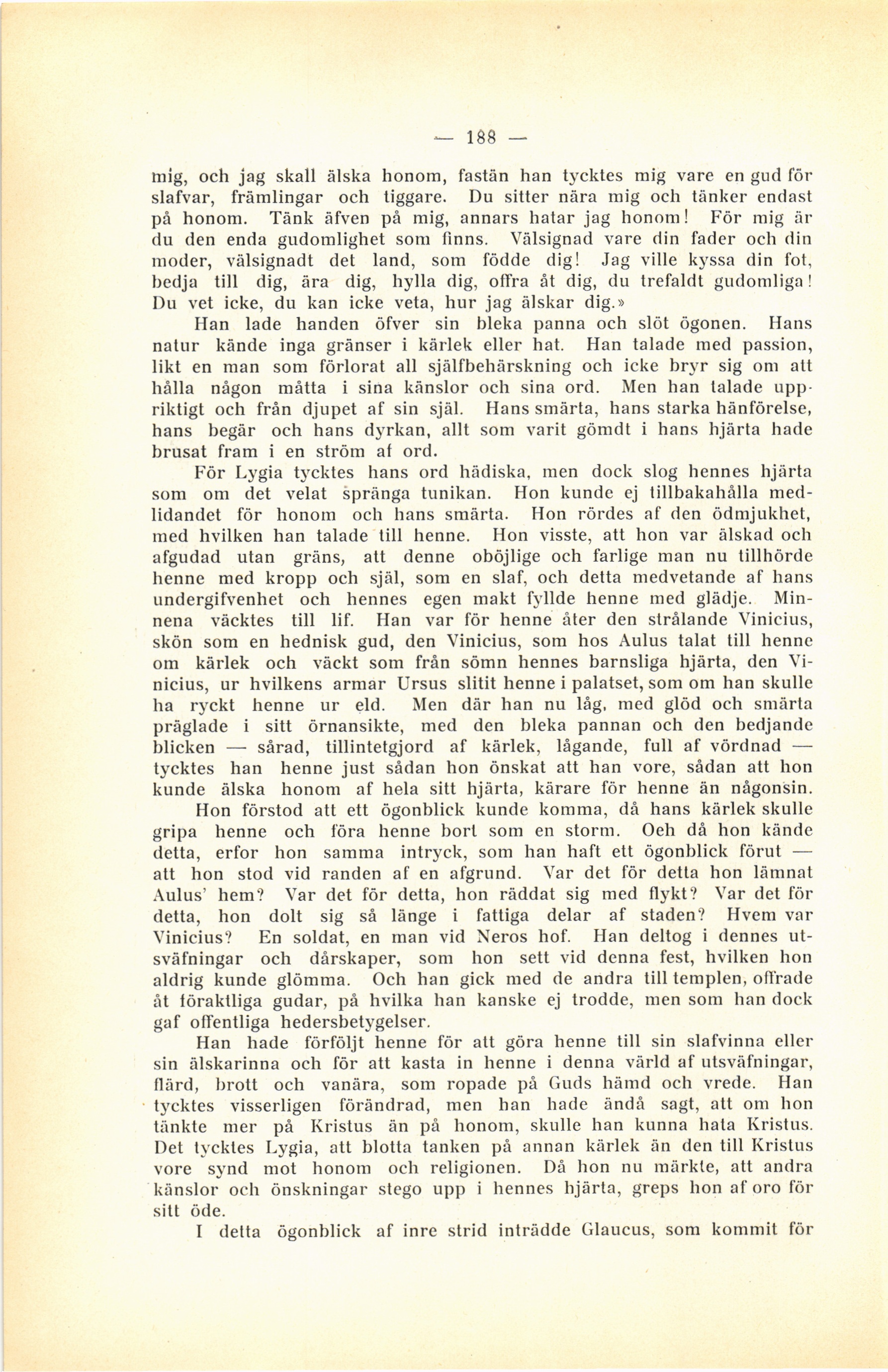 Det tycktes Lygia, att blotta tanken på annan kärlek än den till Kristus