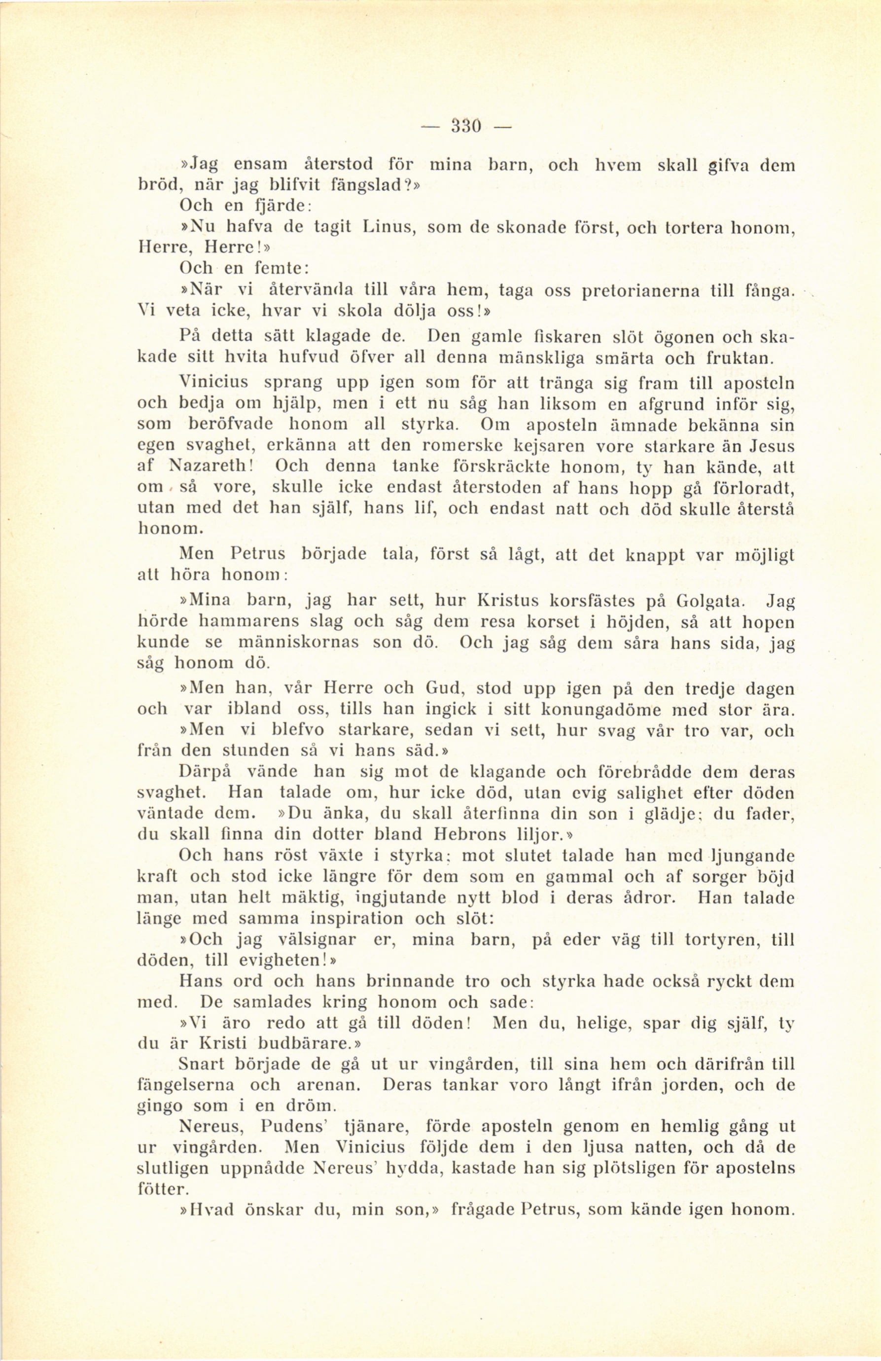 »Nu hafva de tagit Linus, som de skonade först, ocli tortera honom,