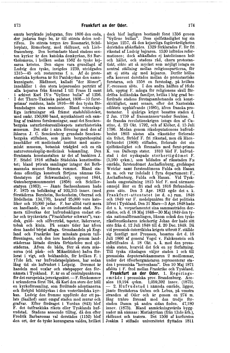 Full resolution (TIFF) - On this page / på denna sida - Frankfurt am Main, stad i preussiska regeringsområdet Wiesbaden - Frankfurt an der Oder, regeringsområde och stad i preussiska prov. Brandenburg