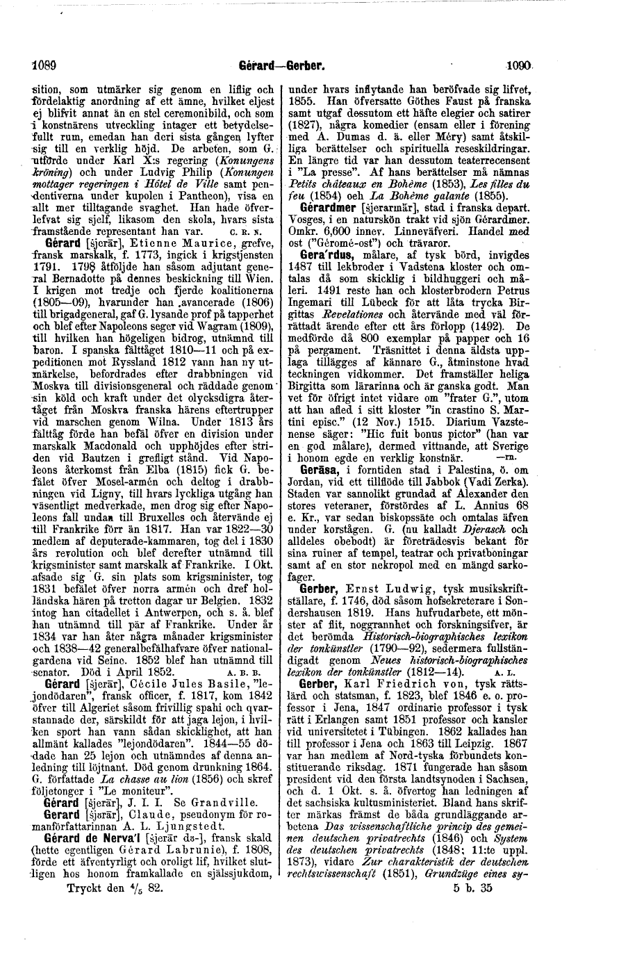 Full resolution (TIFF) - On this page / på denna sida - Gérard, François Pascal, baron de - Gérard, Etienne Maurice - Gérard, Cécile Jules Basile - Gérard, J. I. I. - Gerard, Claude - Gérard de Nerval (Gérard Labrunie) - Gérardmer - Gerardus - Gerasa - Gerber, Ernst Ludwig - Gerber, Karl Friedrich von