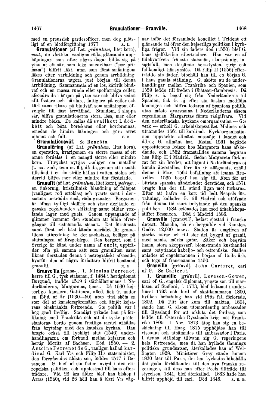 Full resolution (TIFF) - On this page / på denna sida - Grantzow, Adèle - Granulationer - Granulationsväf - Granulering - Granulit - Granvella, 1. Nicolas Perrenot - Granvella, 2. Antoine Perrenot de - Granville (sjöstad) - Granville, John Carteret - 1. Granville, Leveson-Gower