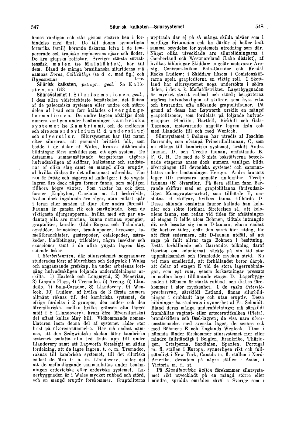 och öfversilur. Silursystemet har fått namn efter