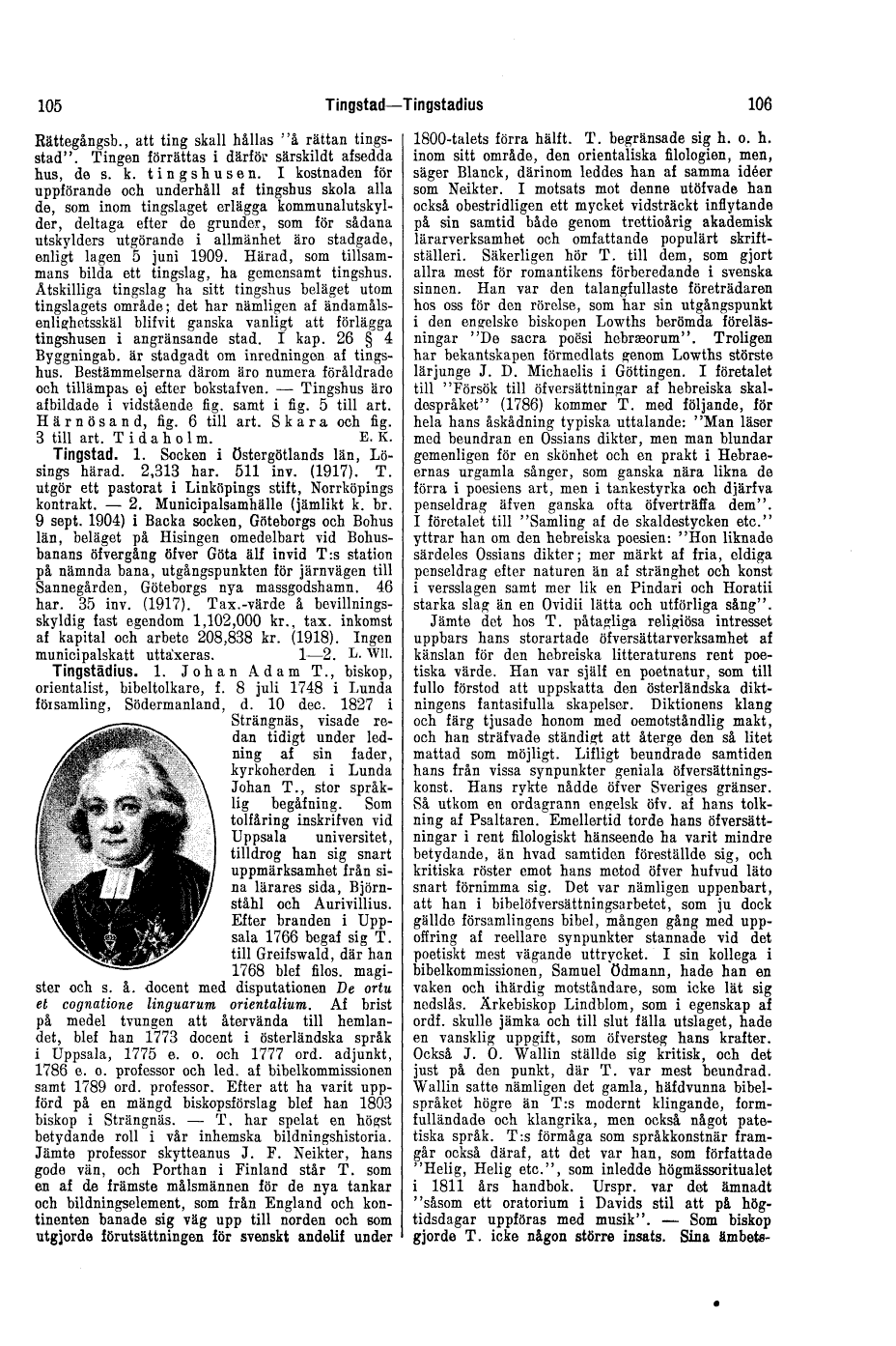 Tingstadius. 1. Johan Adam T., biskop, orientalist,