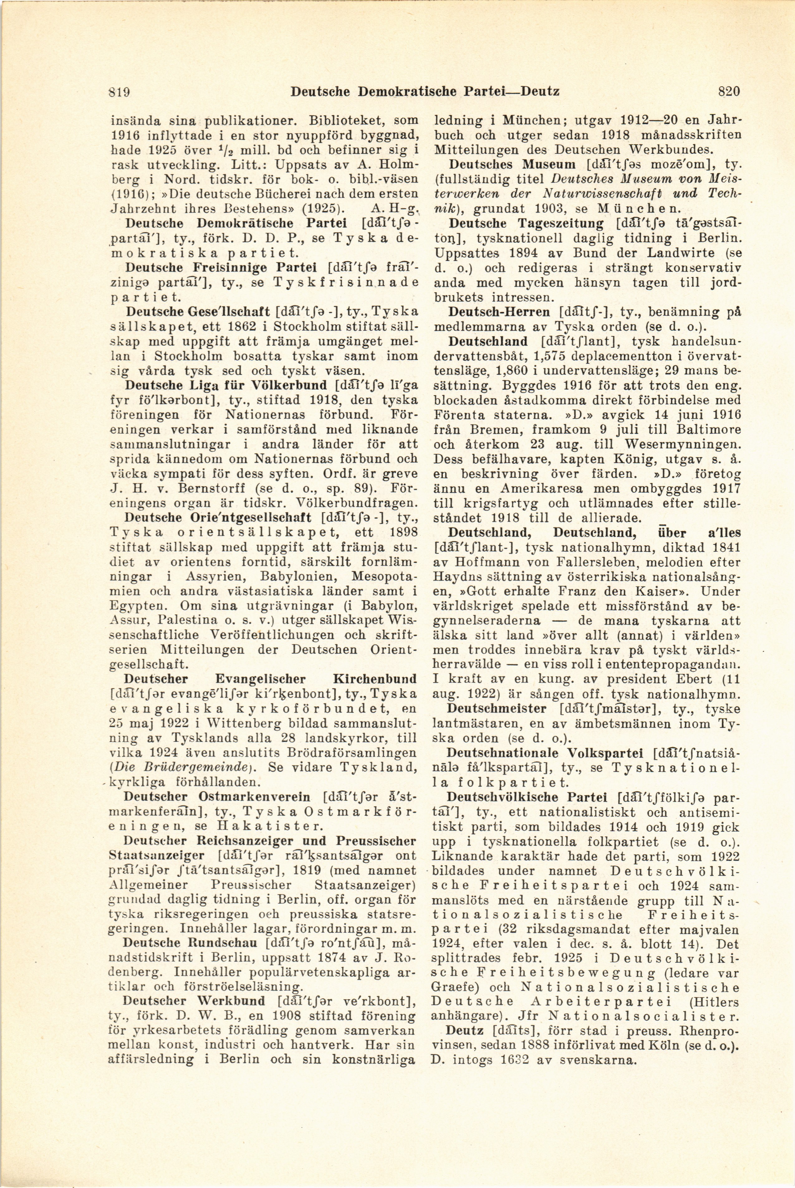 Full resolution (JPEG) - On this page / på denna sida - Deutsche Bücherei - Deutsche Demokratische Partei (D. D. P.) - Deutsche Freisinnige Partei - Deutsche Gesellschaft - Deutsche Liga für Völkerbund - Deutsche Orientgesellschaft, Tyska orientsällskapet - Deutscher Evangelischer Kirchenbund, Tyska evangeliska kyrkoförbundet - Deutscher Ostmarkenverein, Tyska Ostmarksföreningen - Deutscher Reichsanzeiger und Preussischer Staatsanzeiger - Deutsche Rundschau - Deutscher Werkbund (D. W. B.) - Deutsches Museum - Deutsche Tageszeitung - Deutsch-Herren - Deutschland (undervattensbåt) - Deutschland, Deutschland, über alles - Deutschmeister - Deutschnationale Volkspartei - Deutschvölkische Partei - Deutz
