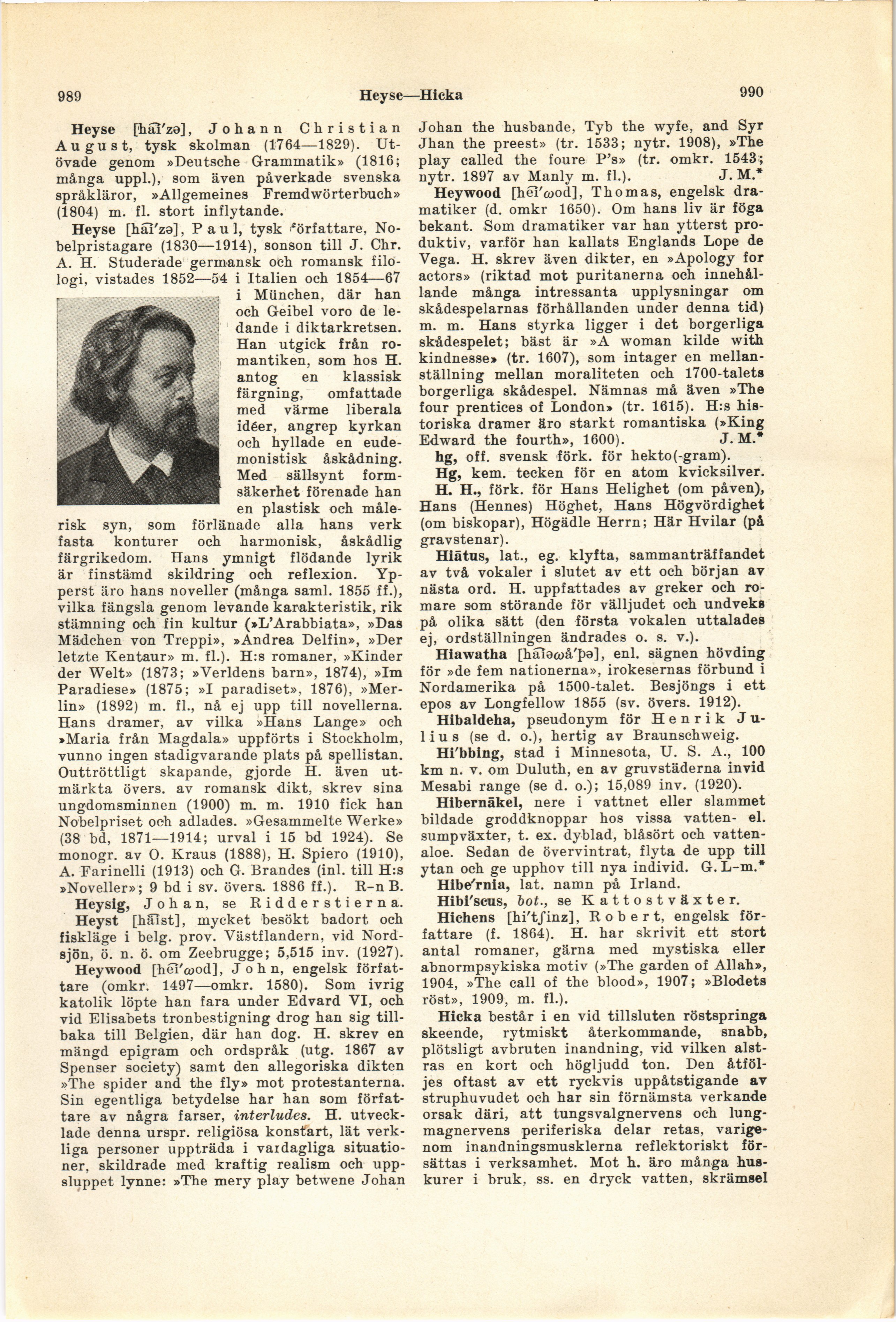 Full resolution (JPEG) - On this page / på denna sida - Heyse, Johann Christian August - Heyse, Paul - Heysig, Johan - Heyst - Heywood, John - Heywood, Thomas - hg - Hg (kemi) - H. H. - Hiatus - Hiawatha - Hibaldeha - Hibbing - Hibernakel - Hibernia - Hibiscus - Hichens, Robert - Hicka