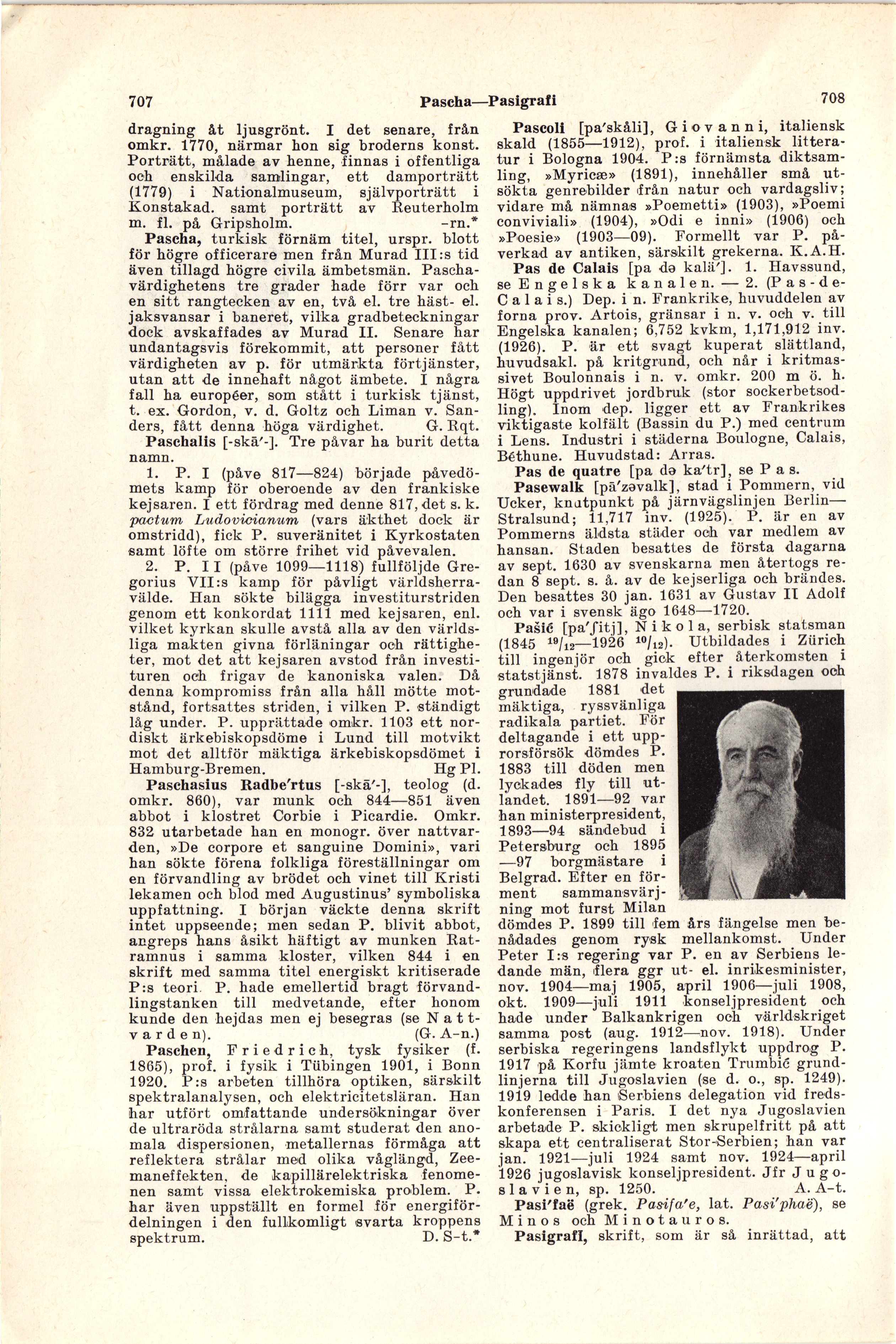 Full resolution (JPEG) - On this page / på denna sida - Pasch, Ulrica Fredrica - Pascha - Paschalis - Paschasius Radbertus - Paschen, Friedrich - Pascoli, Giovanni - Pas de Calais - Pas de quatre - Pasewalk - Pašić, Nikola - Pasifaë - Pasigrafi