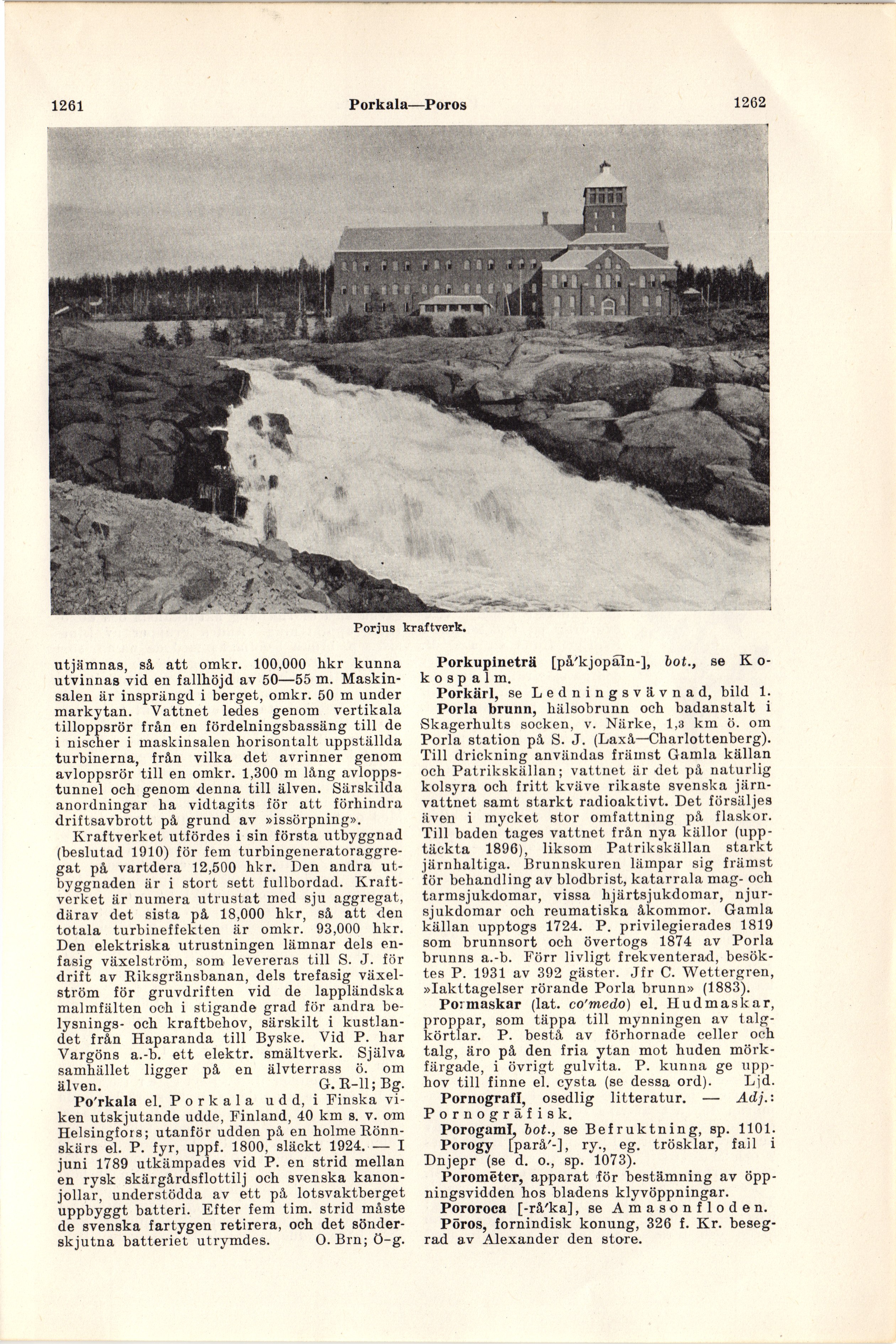Full resolution (JPEG) - On this page / på denna sida - Porjus - Porkala el. Porkala udd - Porkupineträ - Porkärl - Porla brunn - Pormaskar - Pornografi - Porogami - Porogy - Porometer - Pororoca - Poros - Porosalmi - Porositet - Porphyra - Porpora, Niccolò Antonio - Porrasalmi (Porosalmi) - Pors - Porsangerfjord - Porse, släkt - Porsen(n)a, Lar(s) - Porsgrunn - Porsiforsen - Porslin