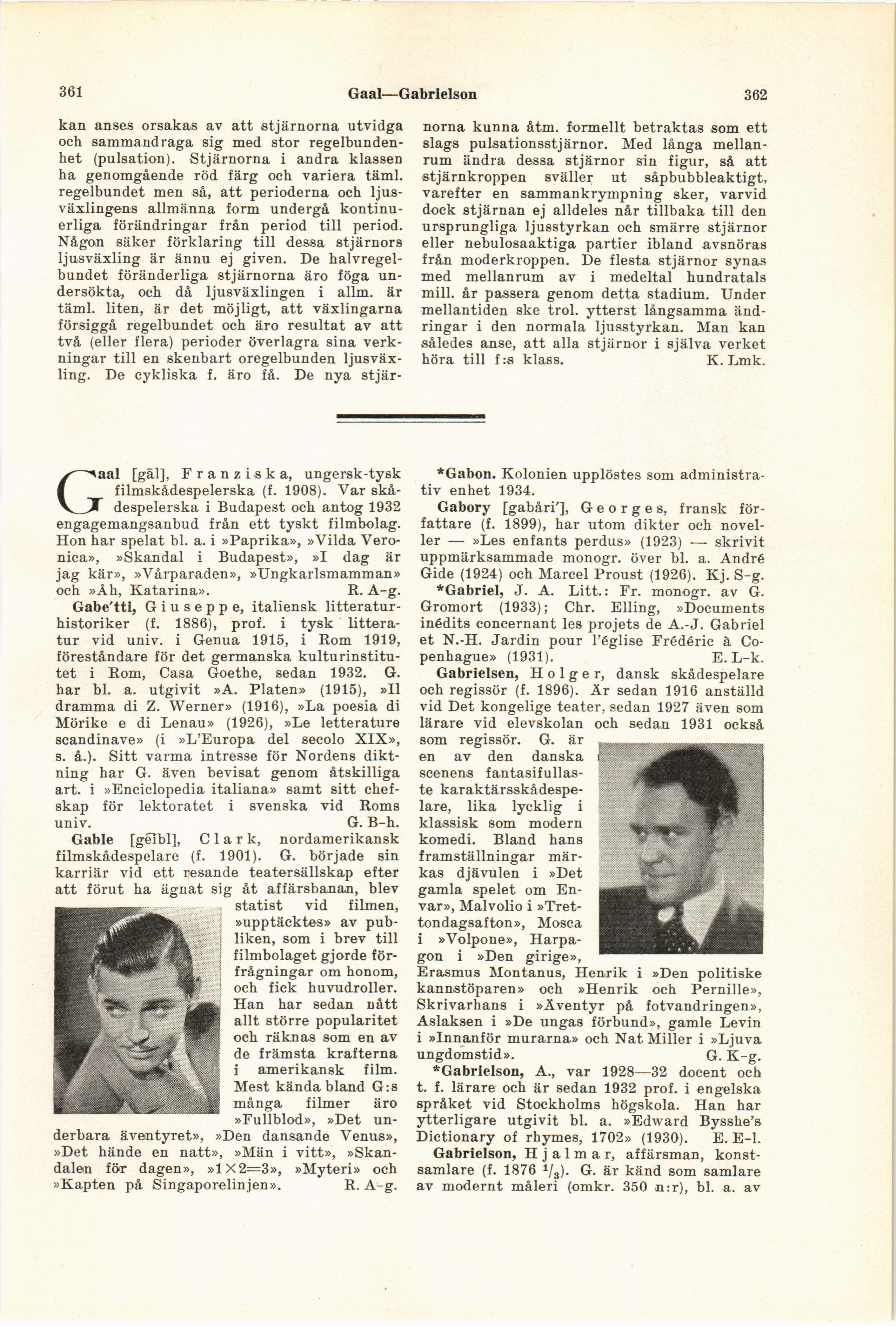 Full resolution (JPEG) - On this page / på denna sida - *Föränderliga stjärnor - Gaal, Franziska - Gabetti, Giuseppe - Gable, Clark - *Gabon - Gabory, Georges - *Gabriel, J. A. - Gabrielsen, Holger - *Gabrielson, A. - Gabrielson, Hjalmar