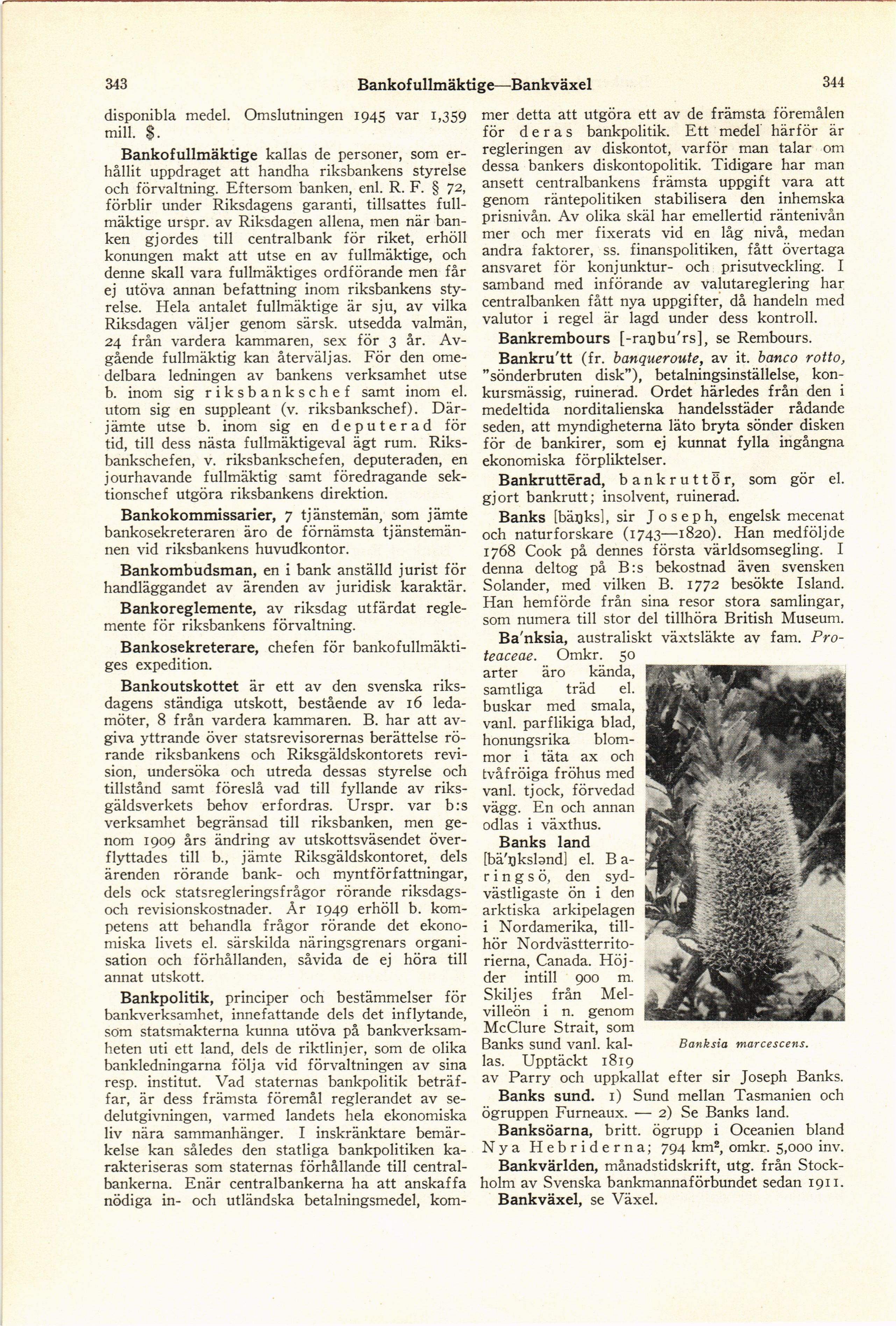 Full resolution (JPEG) - On this page / på denna sida - Bank of the Manhattan Company - Bankofullmäktige - Bankokommissarier - Bankombudsman - Bankoreglemente - Bankosekreterare - Bankoutskottet - Bankpolitik - Bankrembours - Bankrutt - Bankrutterad, bankruttör - Banks, Sir Joseph - Banksia - Banks land el. Baringsö - Banks sund - Banksöarna - Bankvärlden - Bankväxel