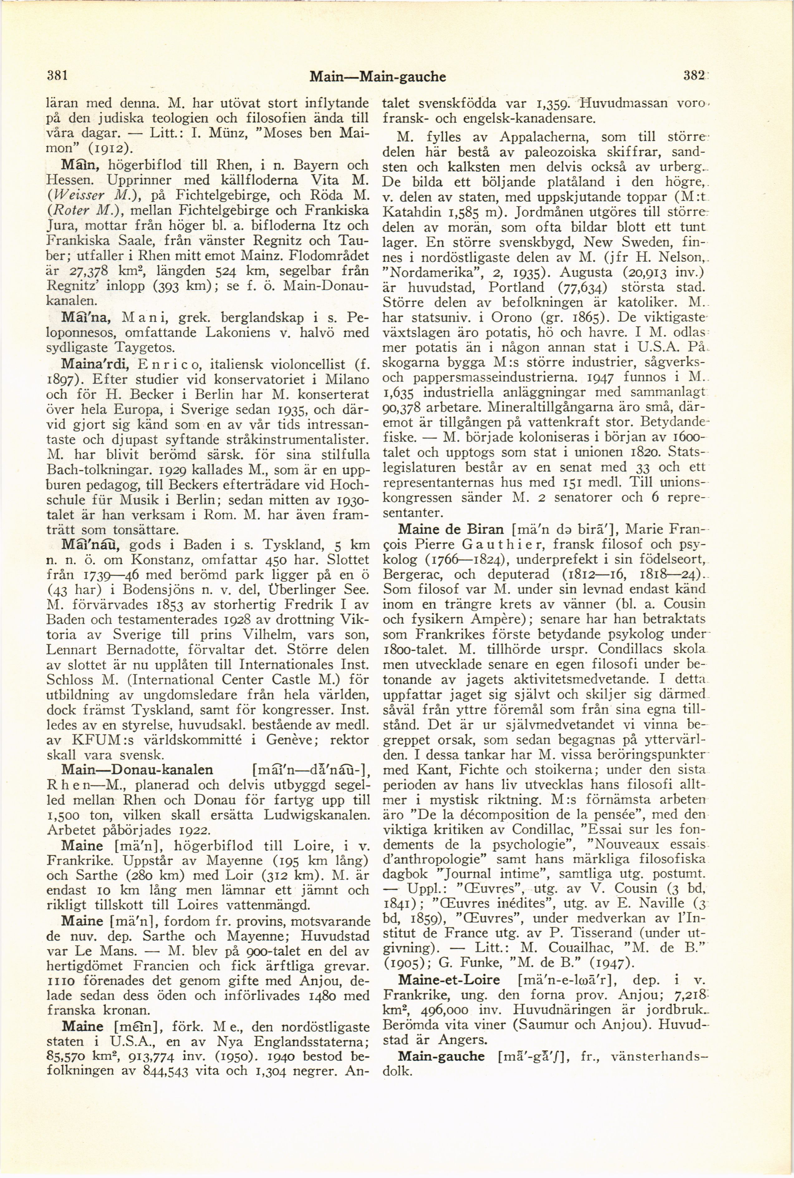 Full resolution (JPEG) - On this page / på denna sida - Maimonides, Moses (Rabbi Moses ben Maimon, Rambam) - Main - Maina, Mani - Mainardi, Enrico - Mainau - Main—Donau-kanalen - Maine (flod) - Maine (provins) - Maine, Me (U.S.A.) - Maine de Biran, Gauthier - Maine-et-Loire - Main-gauche