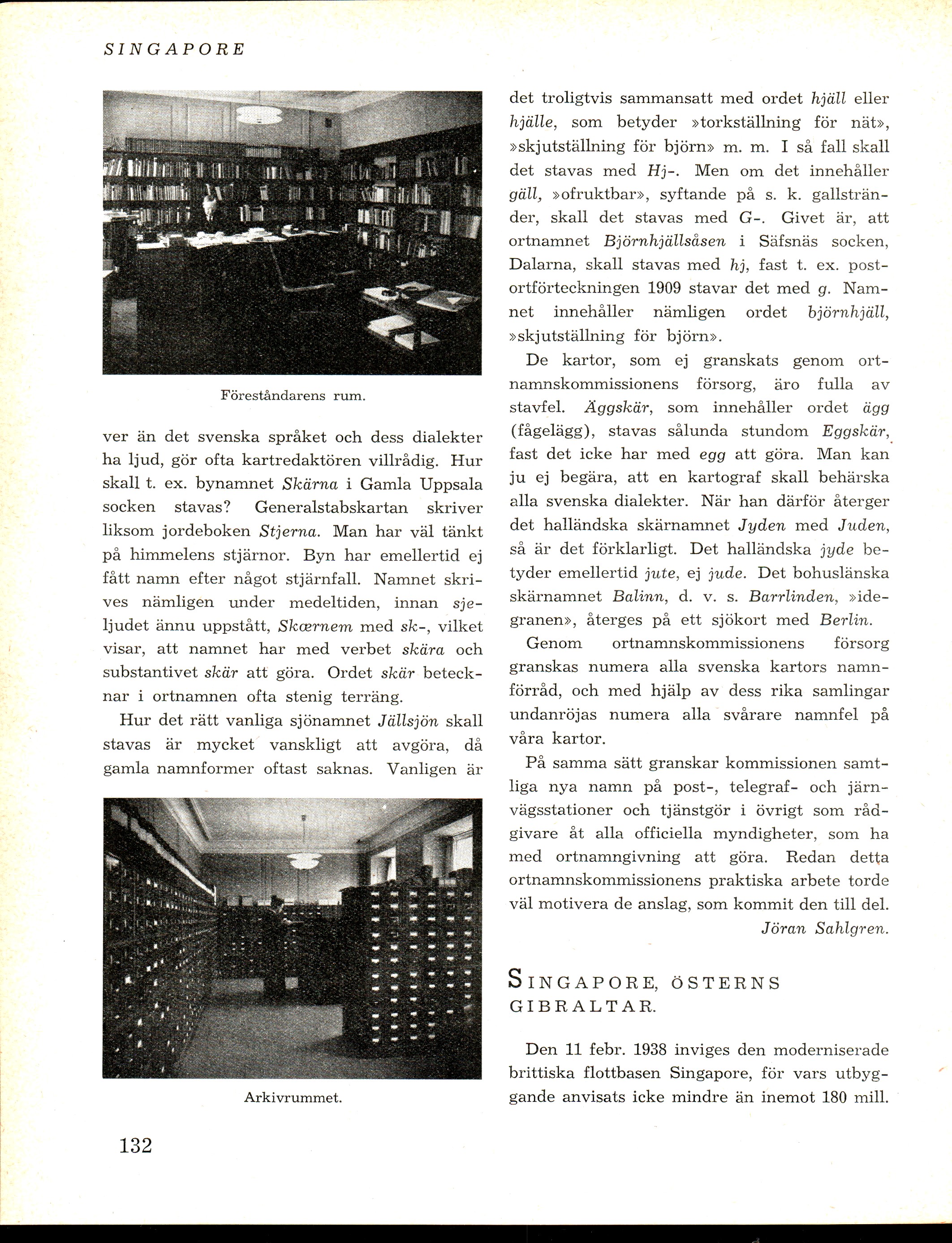 Full resolution (JPEG) - On this page / på denna sida - Häfte 2. Februari 1938 - Den svenska ortnamnsforskningen, av Jöran Sahlgren - Singapore, österns Gibraltar, av O. E. S.