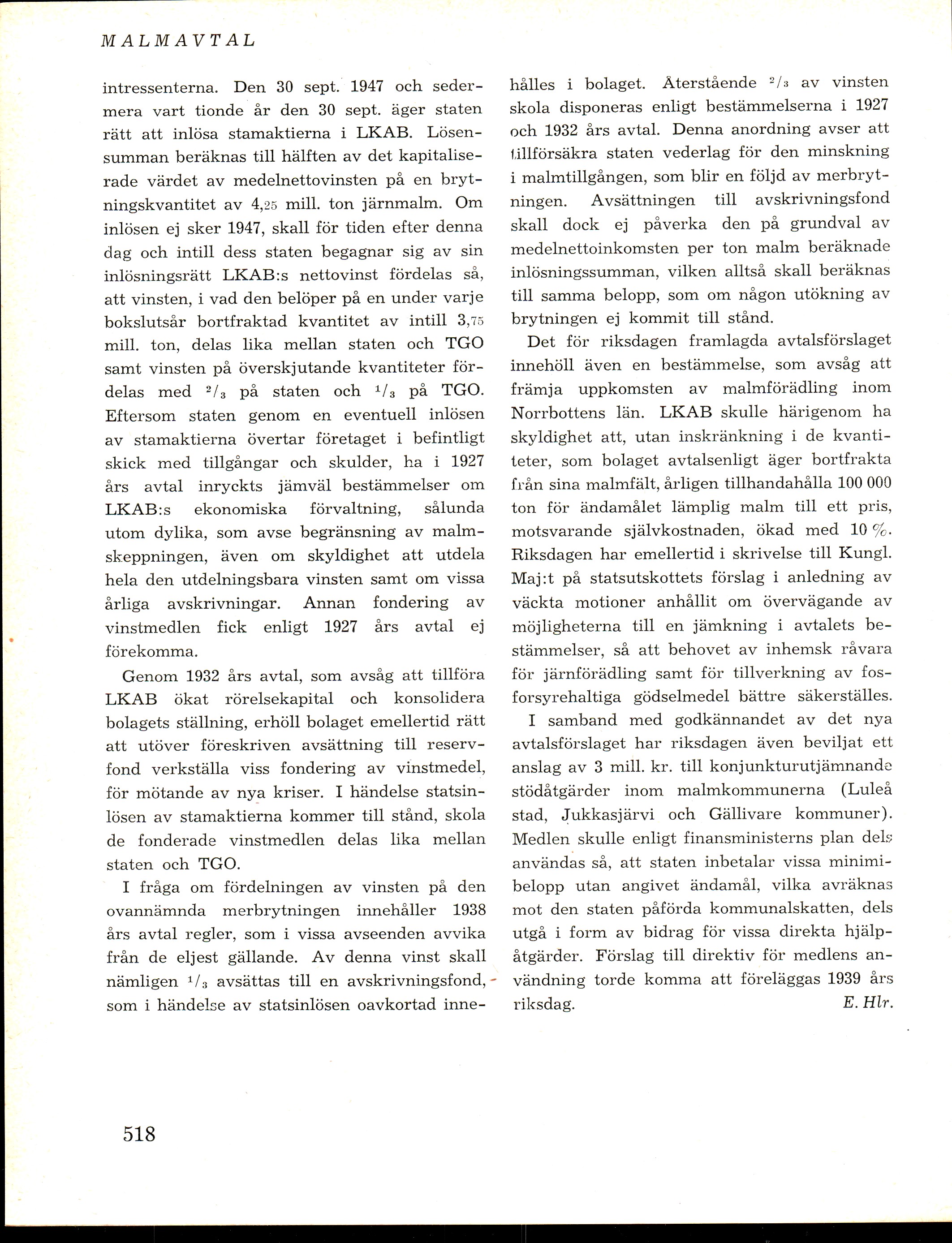 Full resolution (JPEG) - On this page / på denna sida - Häfte 7. Juli 1938 - Nytt malmavtal godkänt av riksdagen, av E. Hlr