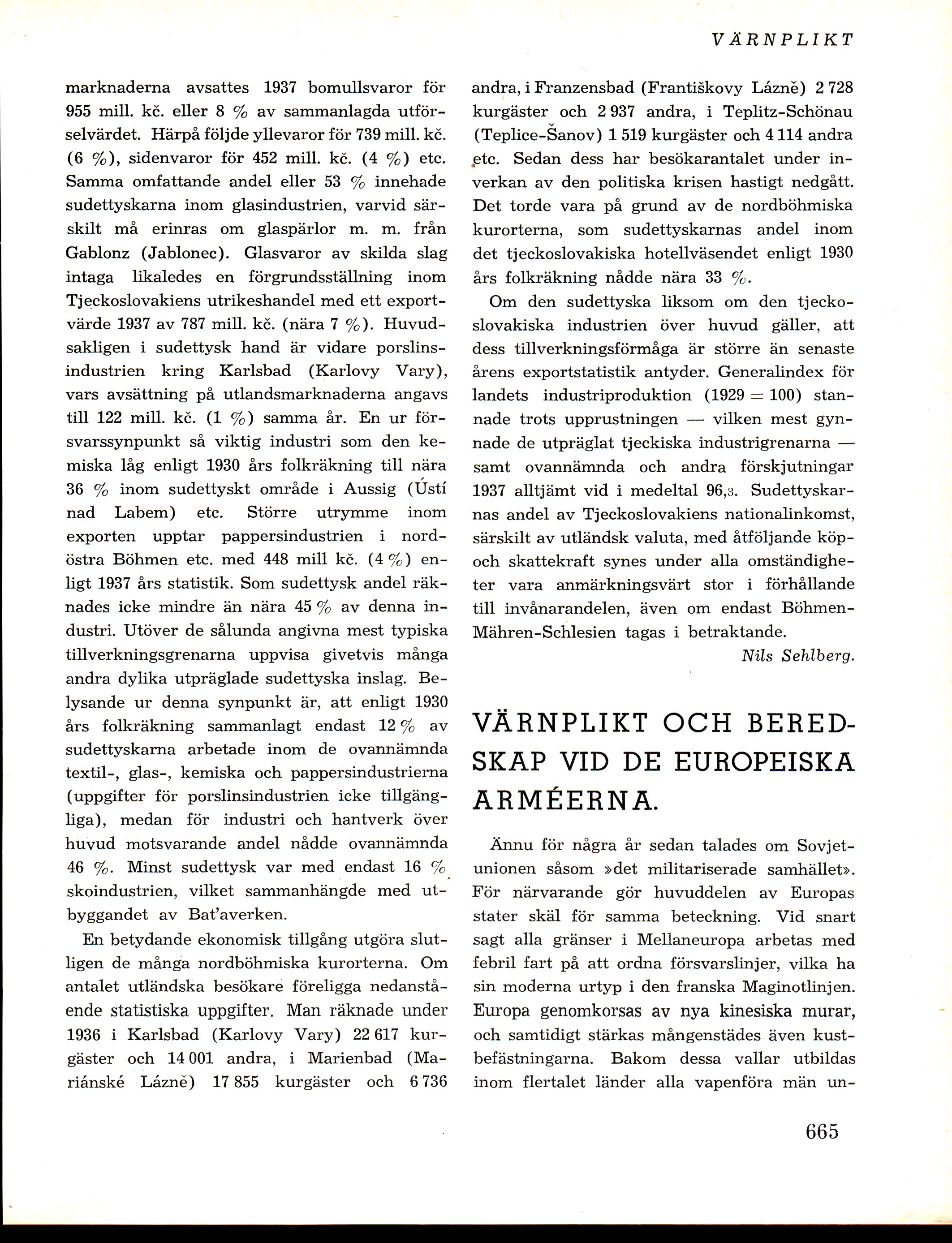 Full resolution (JPEG) - On this page / på denna sida - Häfte 9. Oktober 1938 - Tjeckoslovakiens sudettyska områden. Deras ekonomiska betydelse för landet, av Nils Sehlberg - Värnplikt och beredskap vid de europeiska arméerna, av C. A. Ehrensvärd