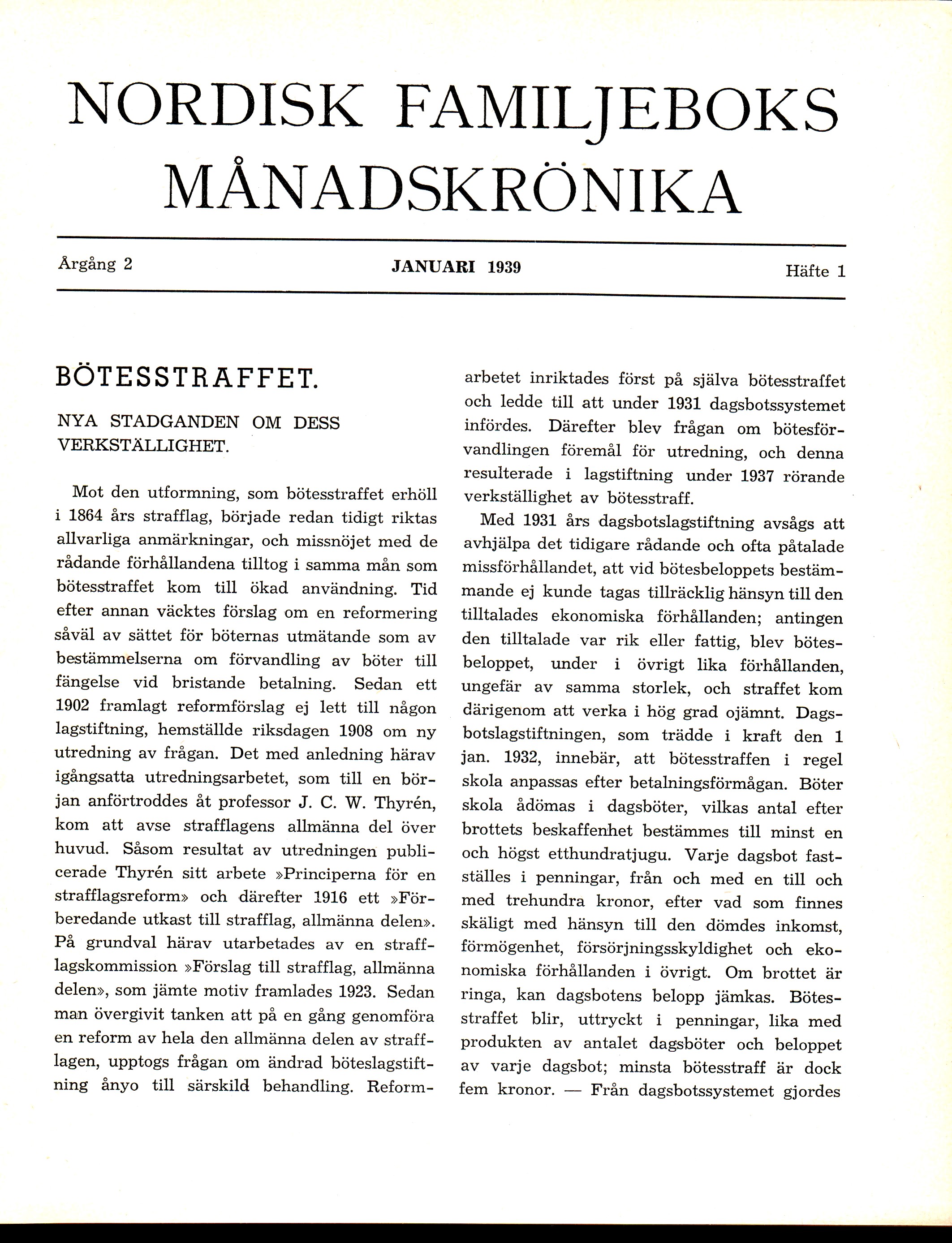 Full resolution (JPEG) - On this page / på denna sida - Häfte 1. Januari 1939 - Bötesstraffet. Nya stadganden om dess verkställigehet, av Nils Regner