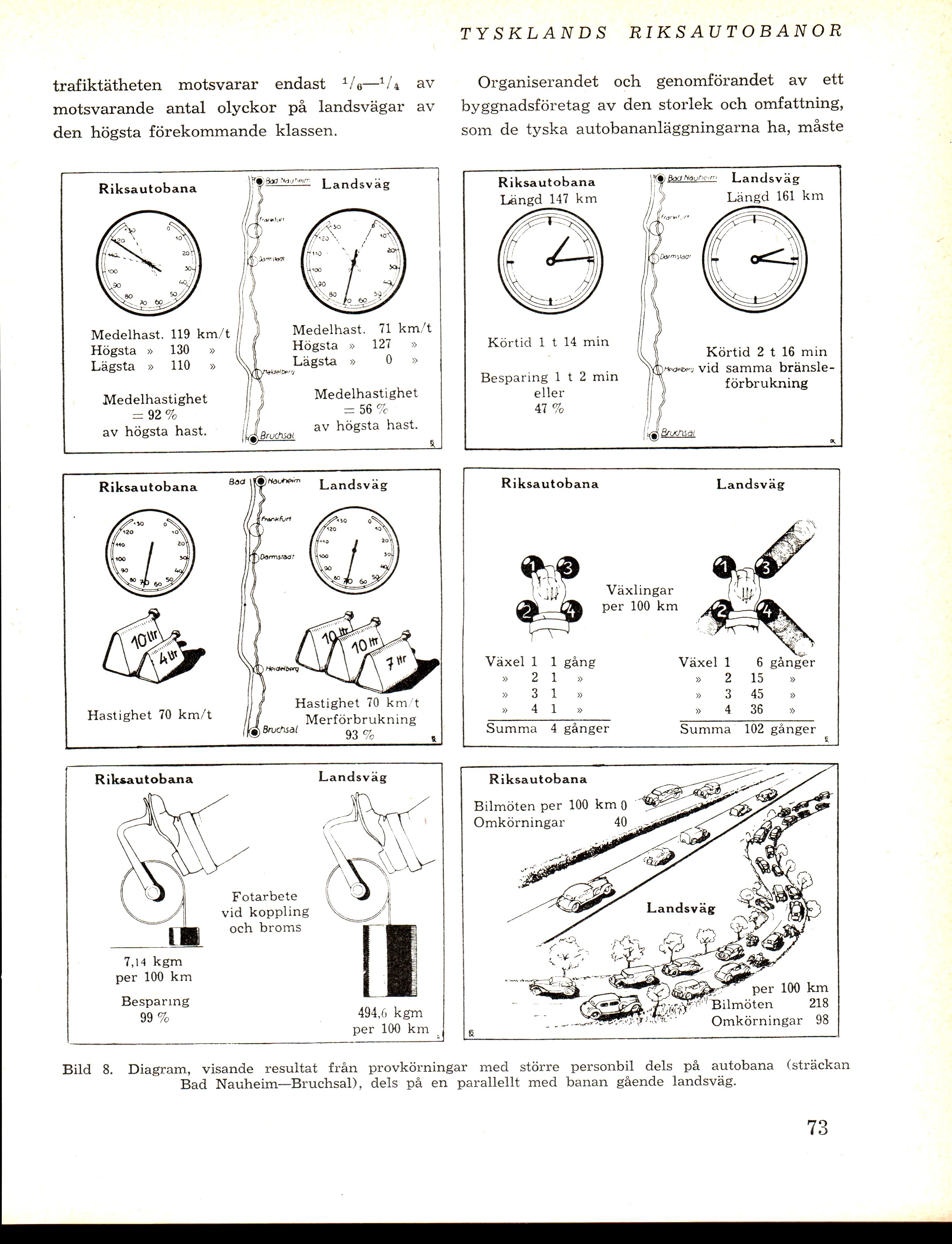 Bild 8. Diagram, visande resultat från provkörningar med större personbil dels på autobana (sträckan