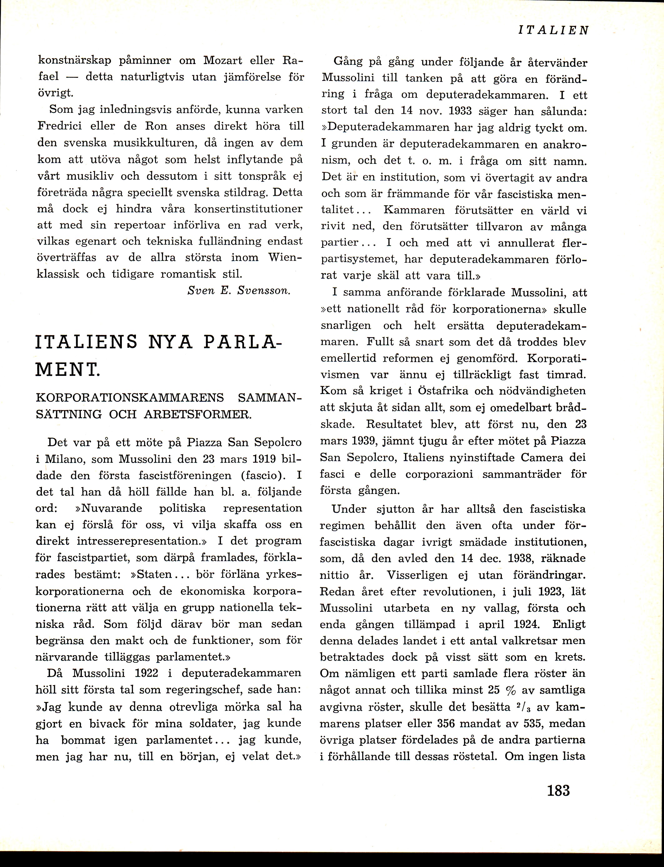 Full resolution (JPEG) - On this page / på denna sida - Häfte 3. Mars 1939 - Gustaf Fredrici och Martin de Ron. Wienklassicism i svensk tonkonst, av Sven E. Svensson - Italiens nya parlament. Korporationskammarens sammansättning och arbetsformer, av Gunhild Bergh
