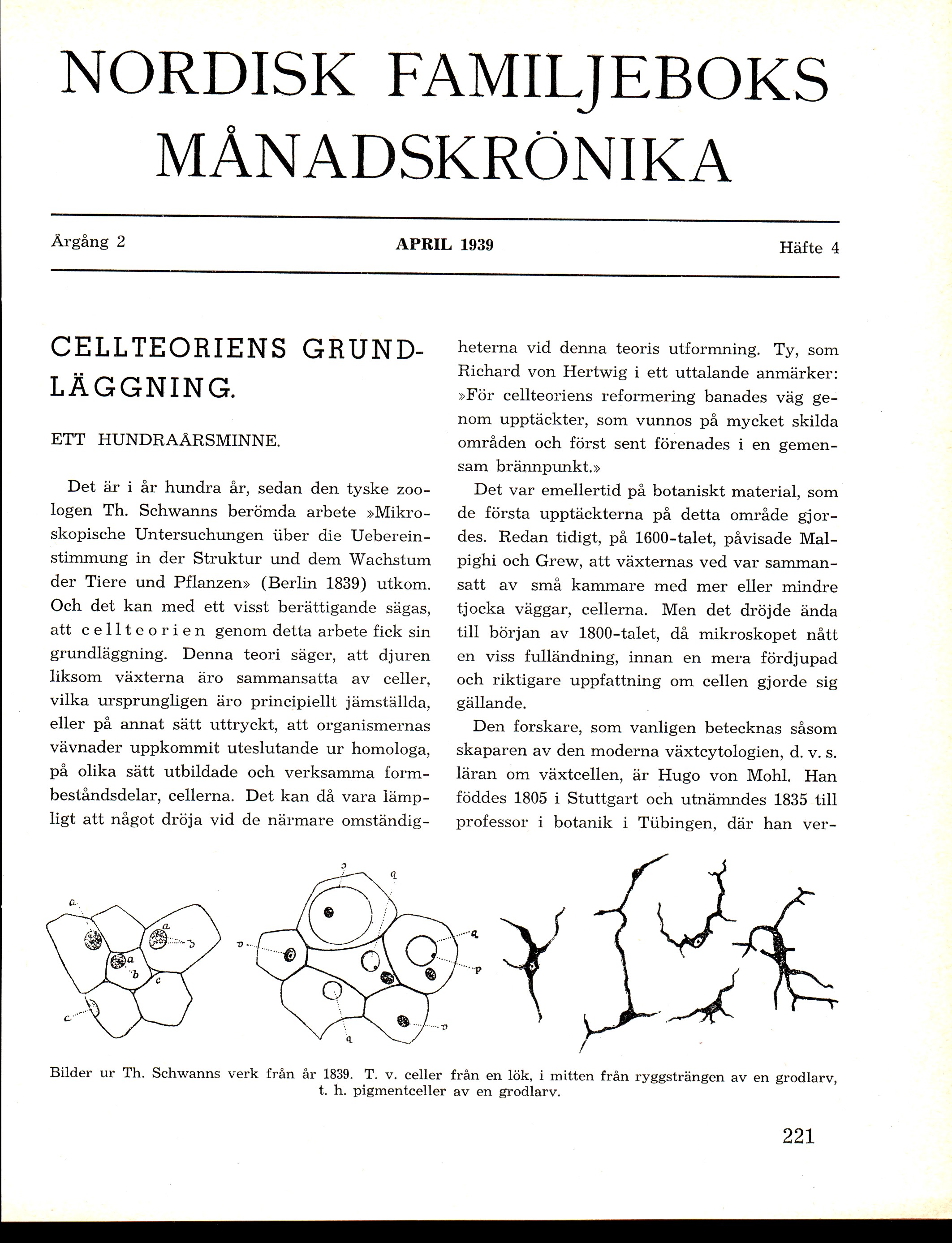 Full resolution (JPEG) - On this page / på denna sida - Häfte 4. April 1939 - Cellteoriens grundläggning. Ett hundraårsminne, av O. Rosenberg