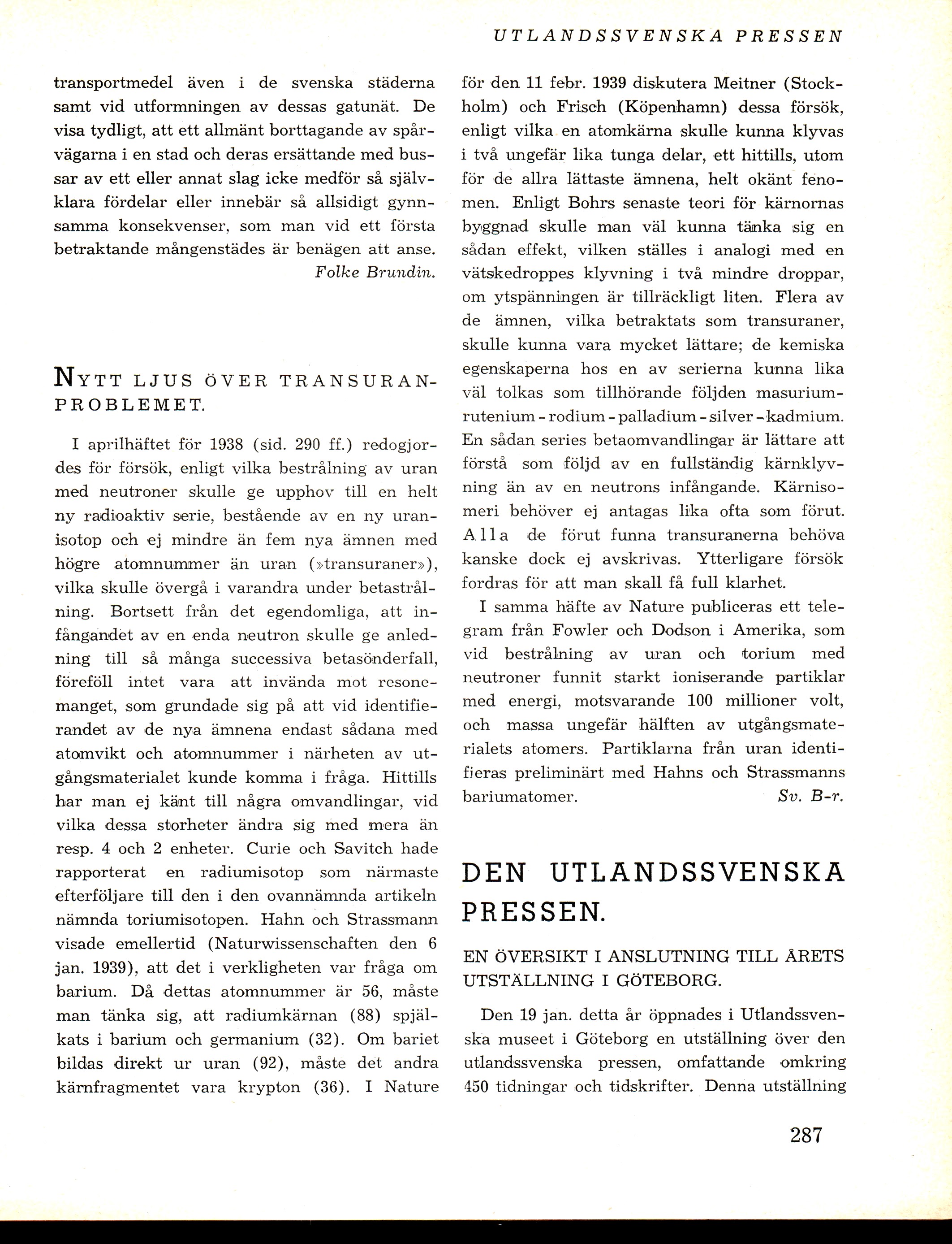 Full resolution (JPEG) - On this page / på denna sida - Häfte 4. April 1939 - Gators och transportmedels trafikkapacitet. Hindrar spårvagnen trafiken? av Folke Brundin - Nytt ljus över transuranproblemet, av Sv. B-r - Den utlandssvenska pressen. En översikt i anslutning till årets utställning i Göteborg, av Axel Fredenholm