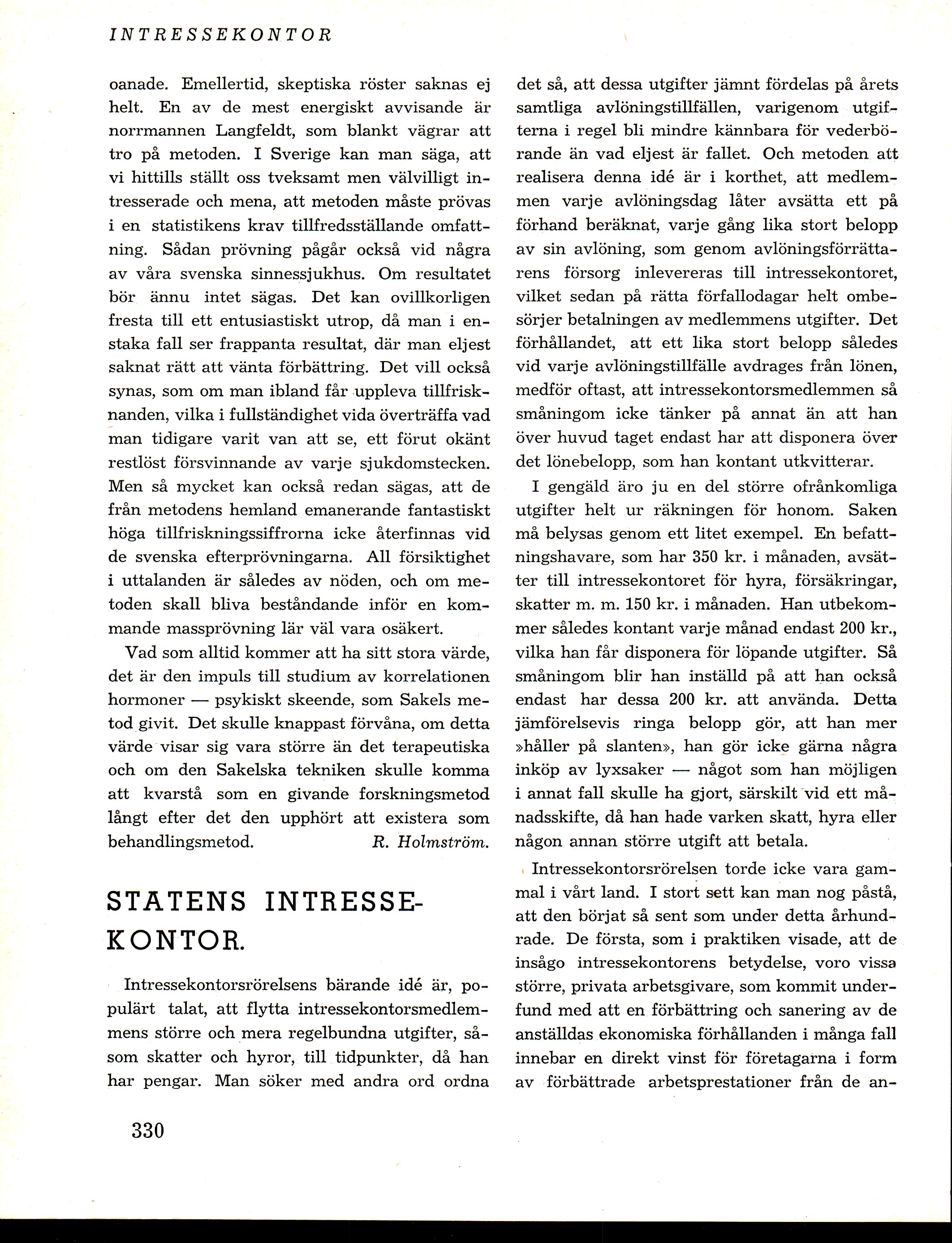 Full resolution (JPEG) - On this page / på denna sida - Häfte 5. Maj 1939 - Insulinbehandling av sinnessjukdomar, av R. Holmström - Statens intressekontor, av Thorsten Gerle