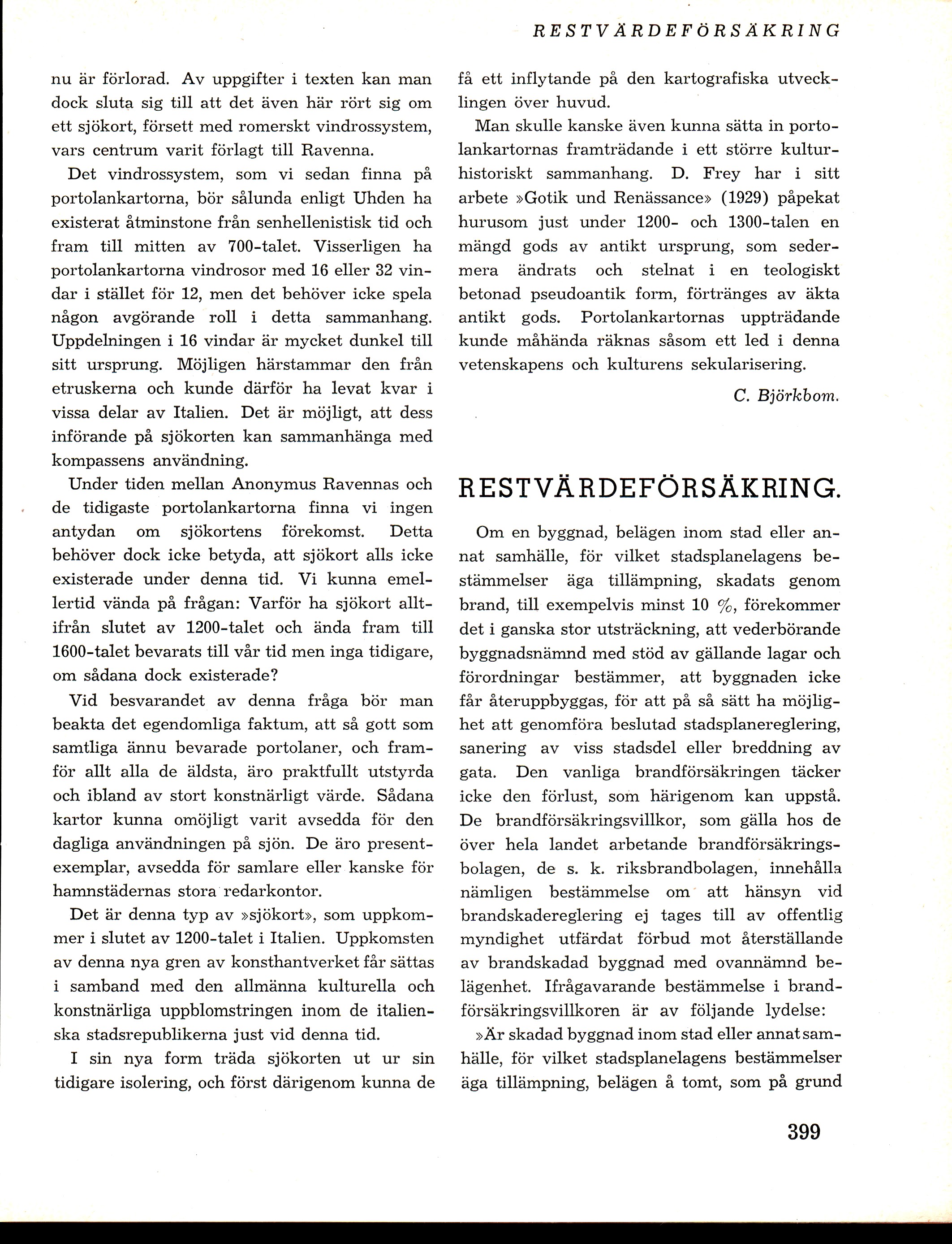 Full resolution (JPEG) - On this page / på denna sida - Häfte 6. Juni 1939 - Portolankartornas uppkomst. Ett svårlöst historisk-kartografiskt problem, av C. Björkbom - Restvärdesförsäkring, av T. von Post