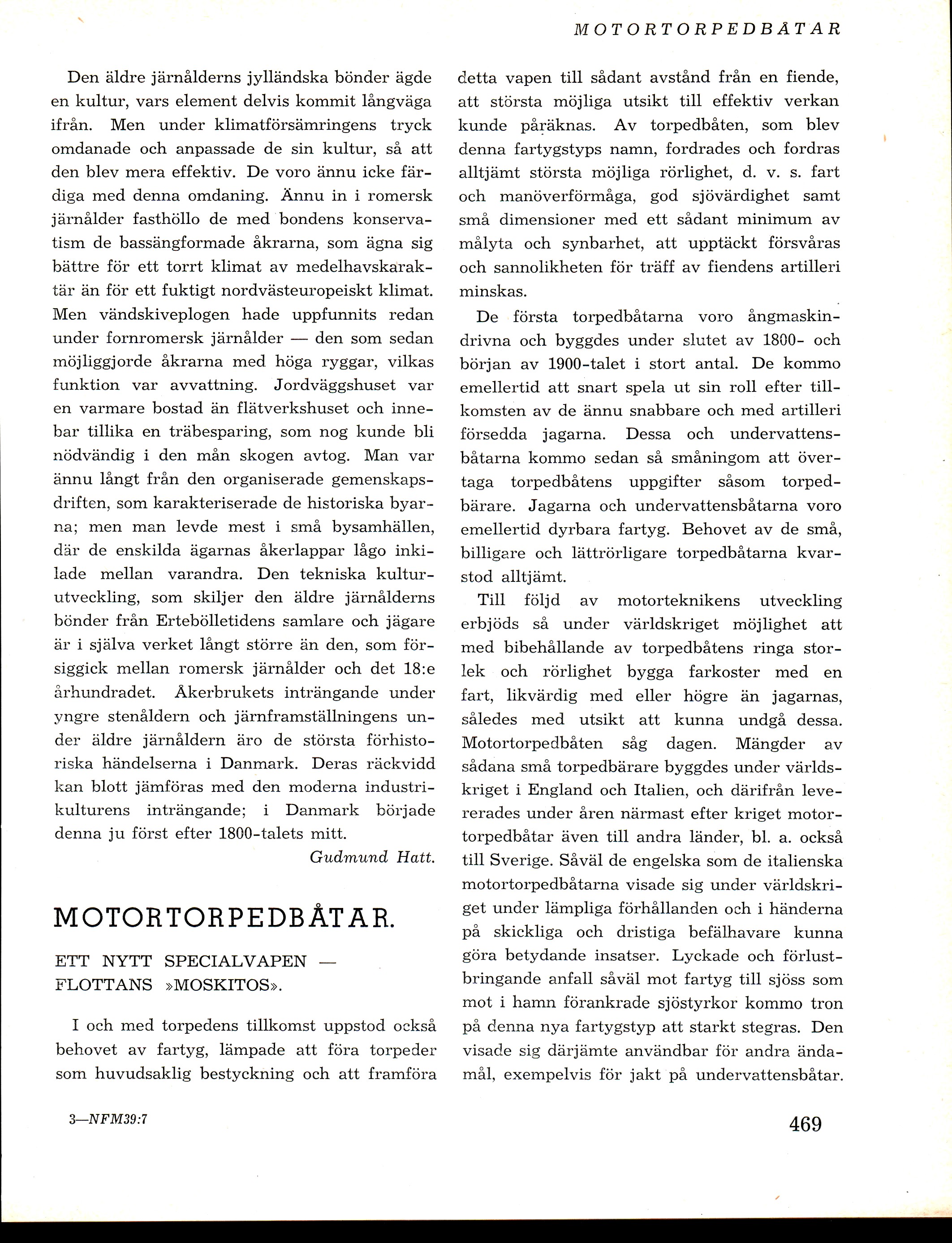 Full resolution (JPEG) - On this page / på denna sida - Häfte 7. Juli 1939 - Jylländskt bondeliv under äldre järnåldern. Omläggning av jordbruket under inverkan av klimatförsämring, av Gudmund Hatt - Motortorpedbåtar. Ett nytt specialvapen - flottans »moskitos», av Gustaf Holmberg