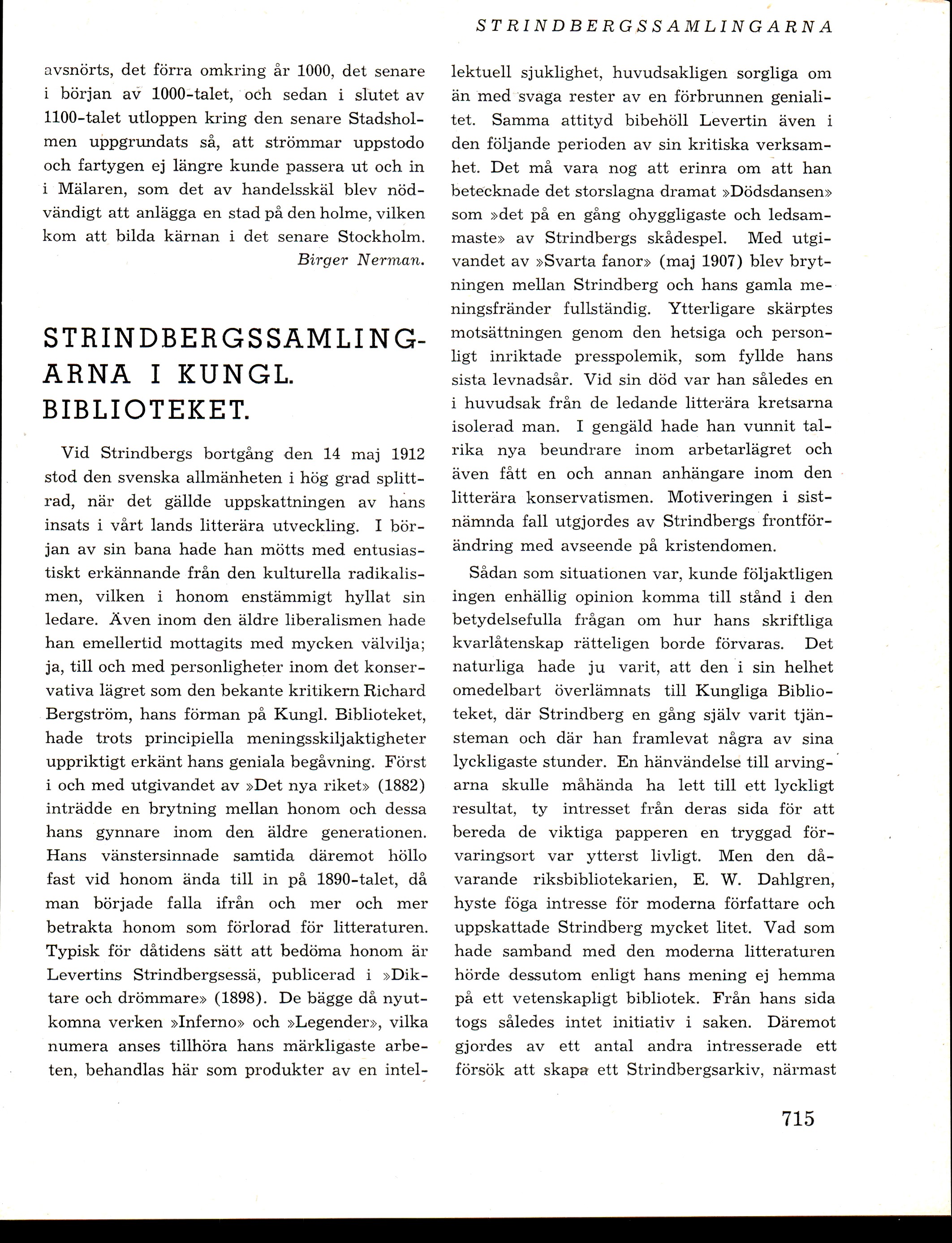 Full resolution (JPEG) - On this page / på denna sida - Häfte 10. November 1939 - Det forntida Stockholm. I belysning av nyare fynd, av Birger Nerman - Strindbergssamlingarna i Kungl. biblioteket, av O. Wieselgren