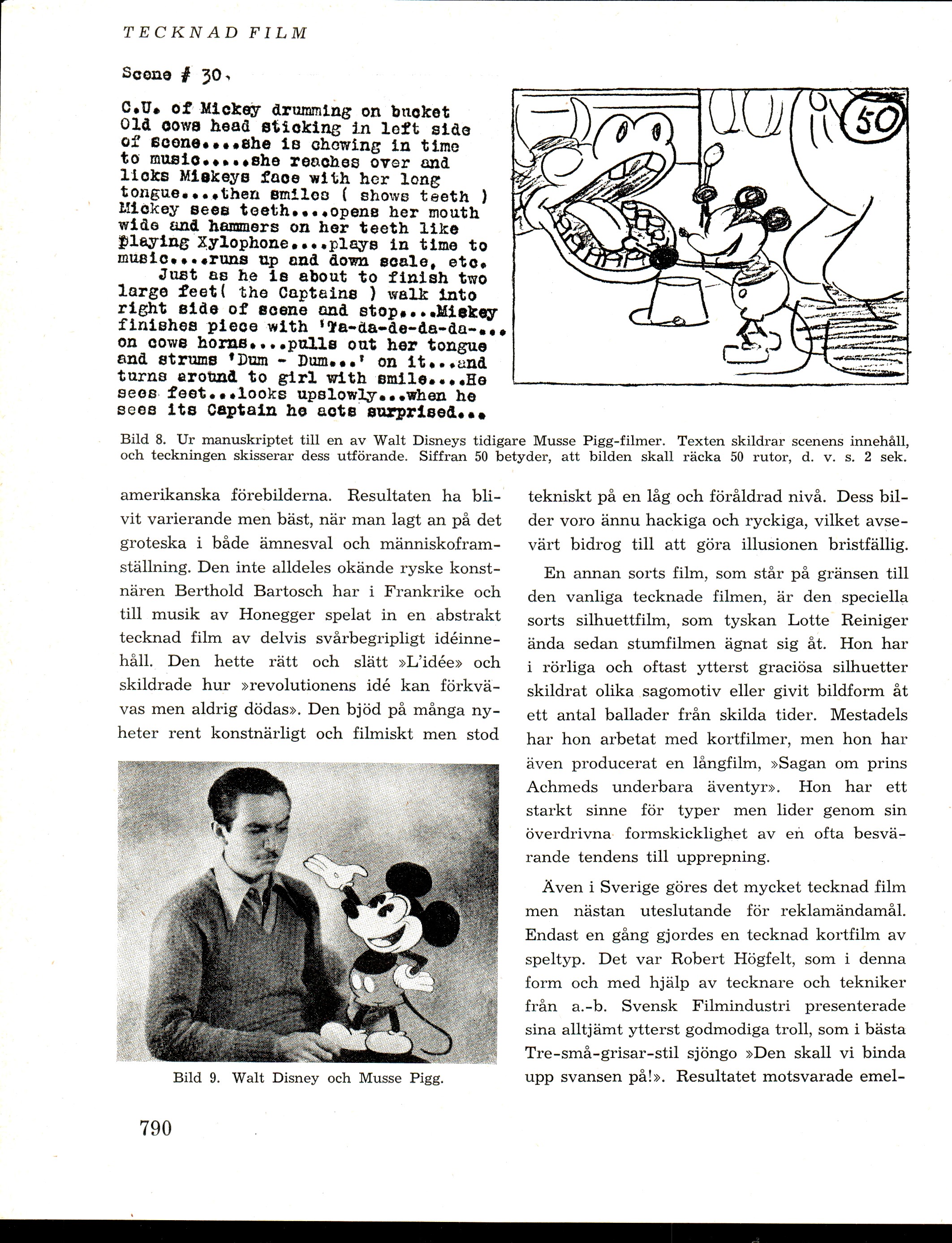 Bild 8. Ur manuskriptet till en av Walt Disneys tidigare Musse Pigg-filmer. Texten skildrar scenens innehåll,