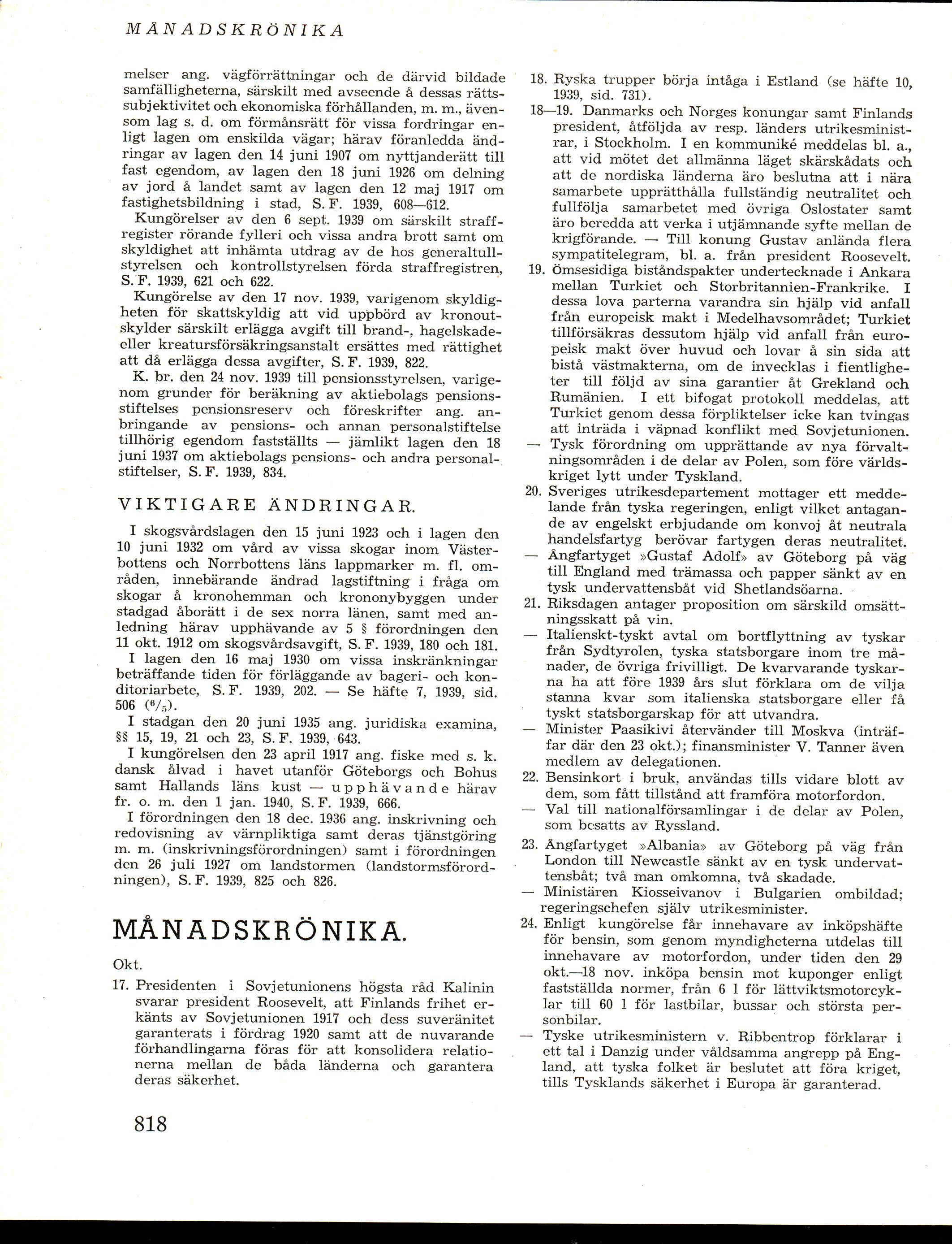 Full resolution (JPEG) - On this page / på denna sida - Häfte 11. December 1939 - Nya lagar och författningar - Månadskrönika