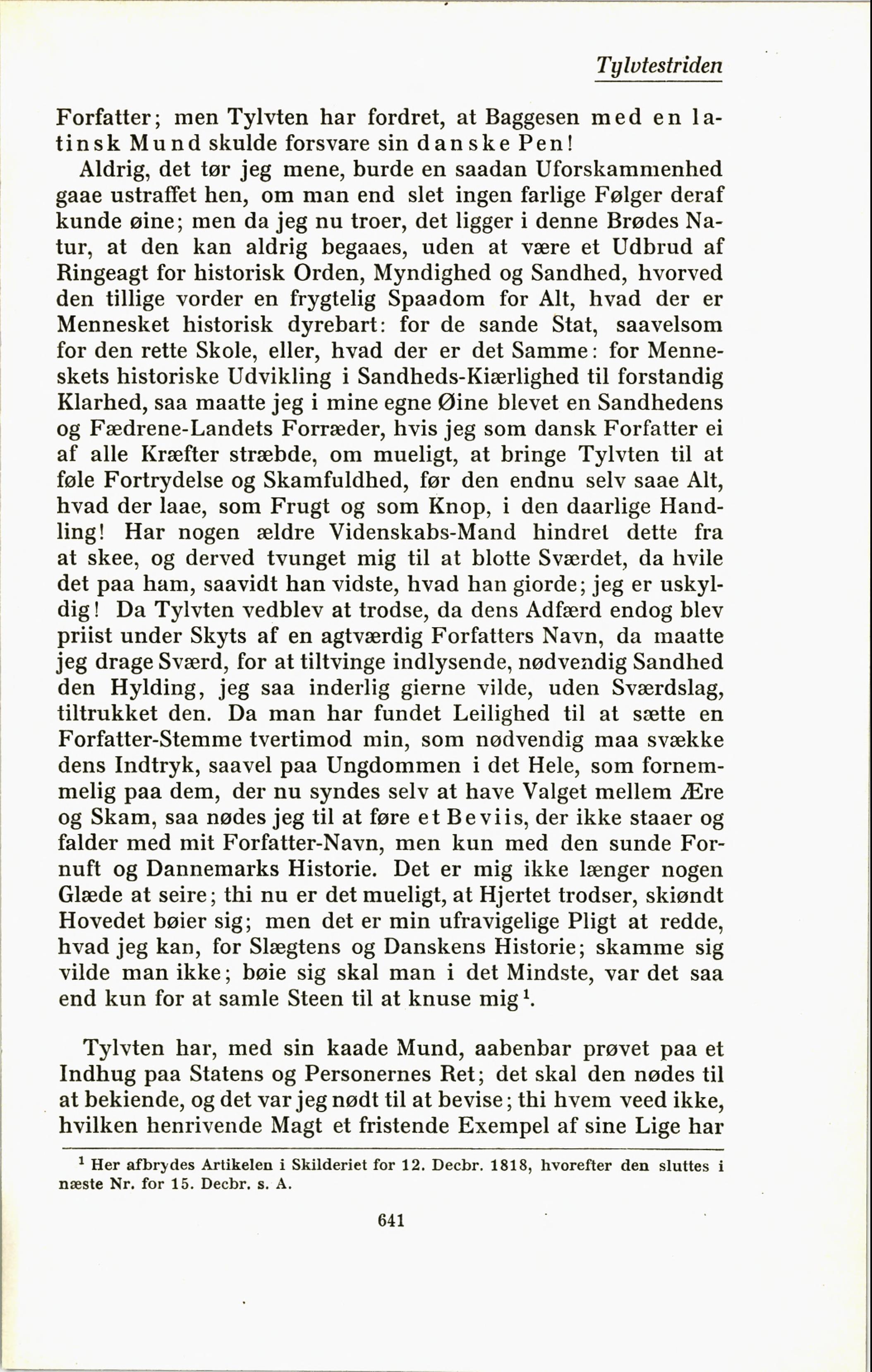Forfatter; men Tylvten har fordret, at Baggesen med en la