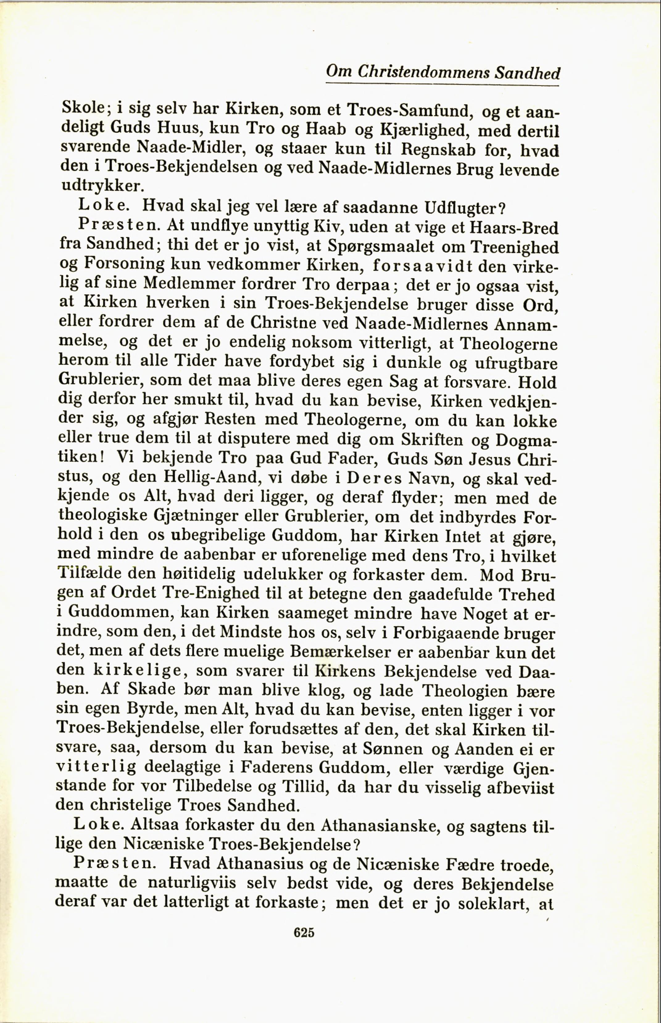 Loke. Altsaa forkaster du den Athanasianske, og sagtens til