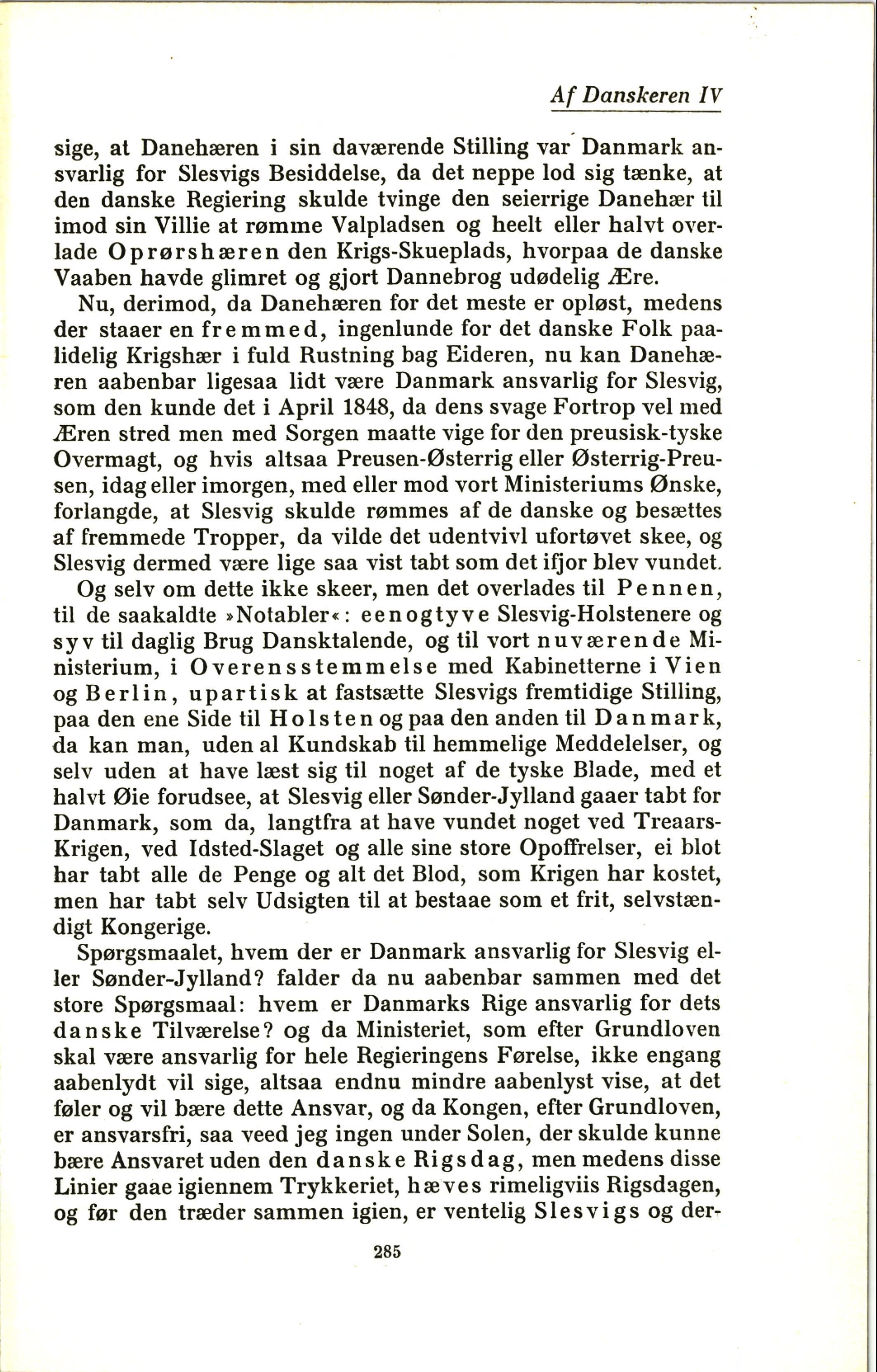 ren aabenbar ligesaa lidt være Danmark ansvarlig for Slesvig,