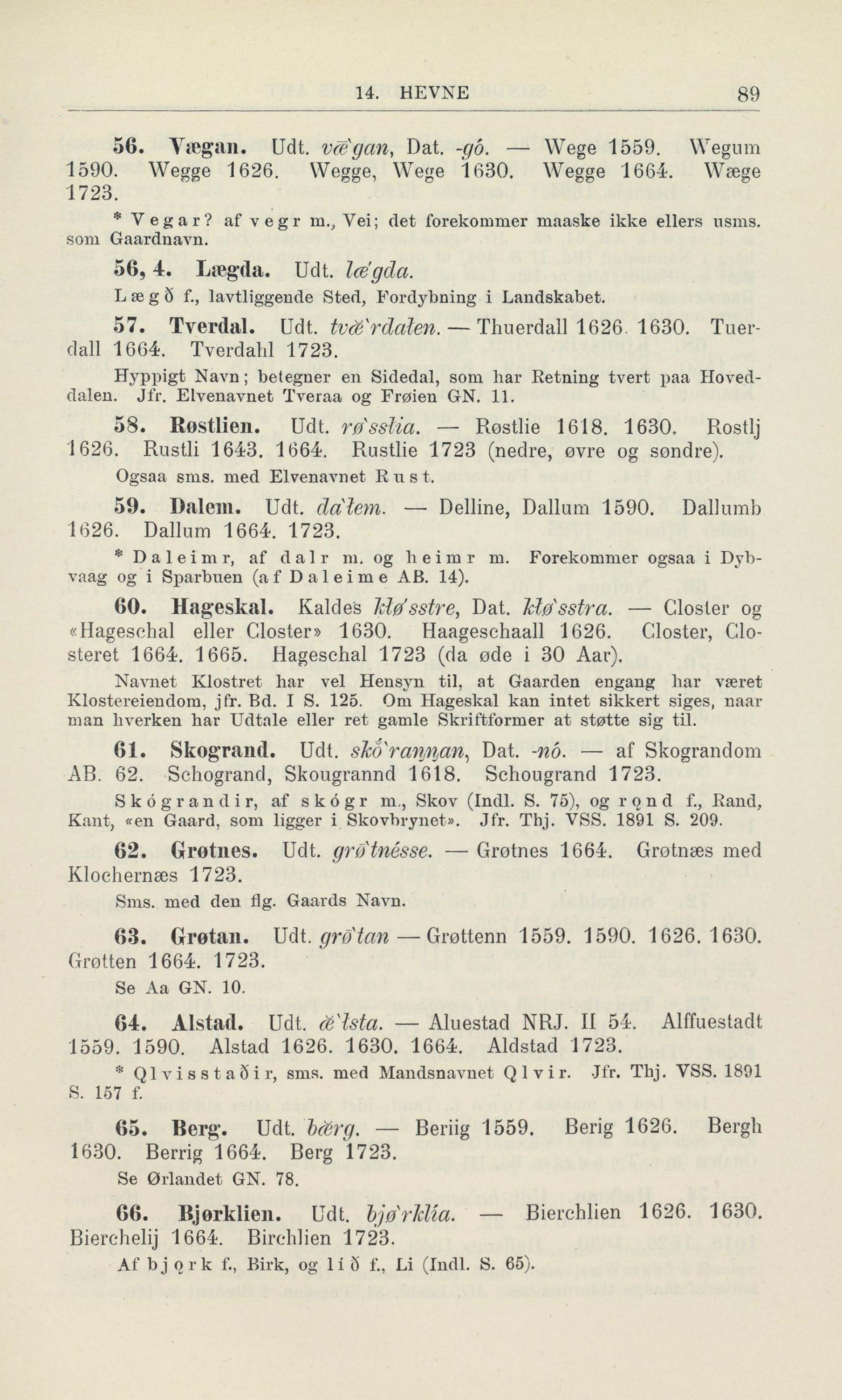 57. Tverdal. Udt. tv&rdalen. — Thuerdall 1626. 1630.