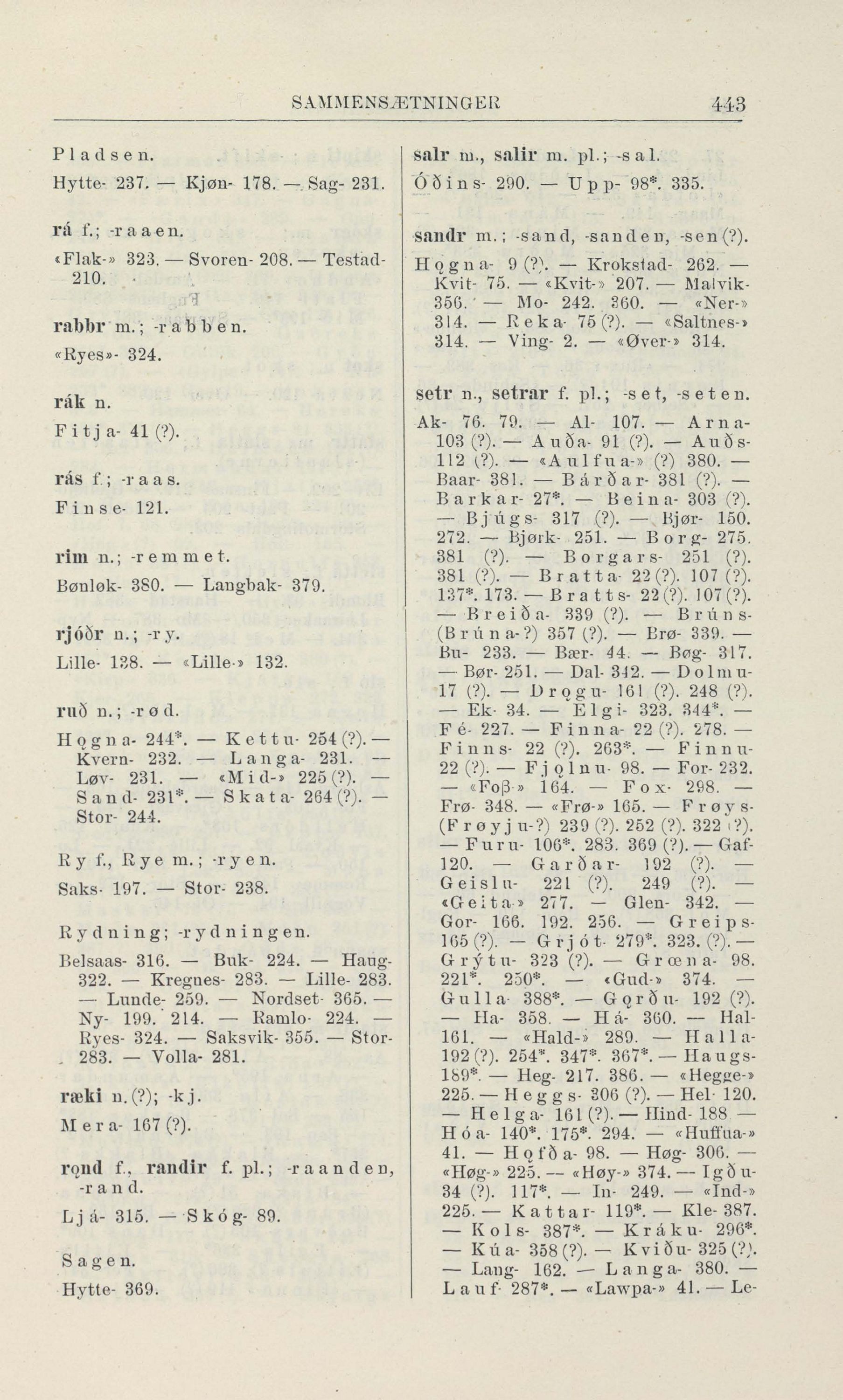 Hytte- 237. — Kjøn- 178. — Sag- 231.