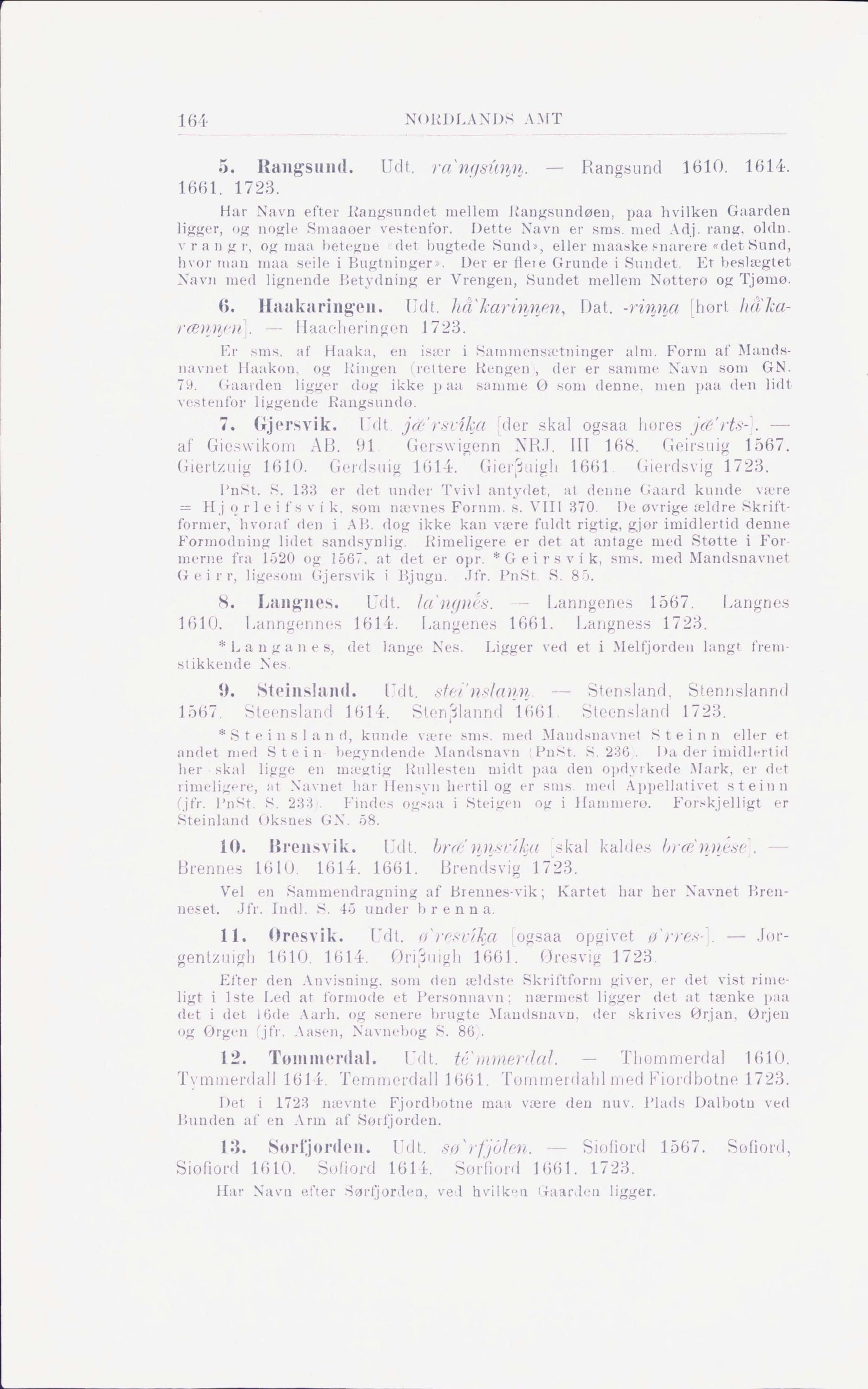 5. Rangsund. Udt. ra`ngsúᶇᶇ. — Rangsund 1610. 1614.