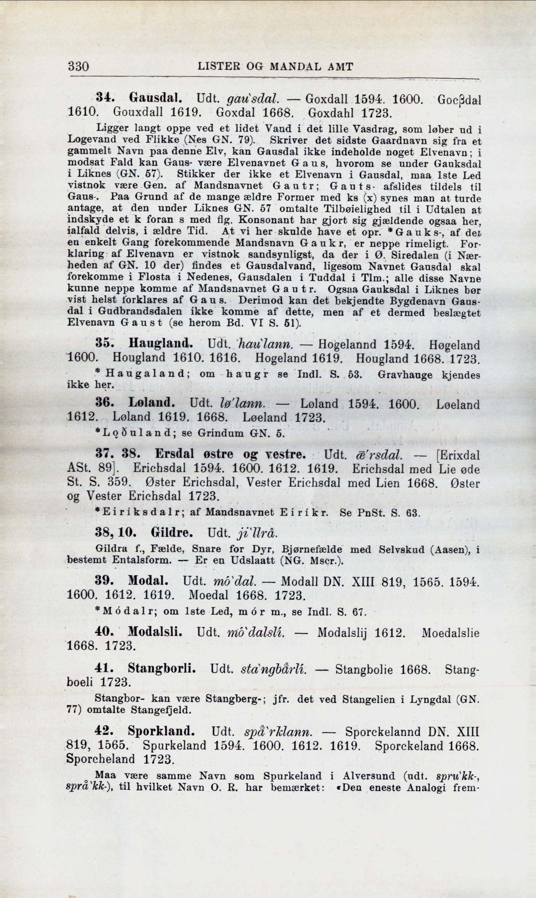 34. Gausdal. Udt. gausdal. — Goxdall 1594. 1600. Gocßdal