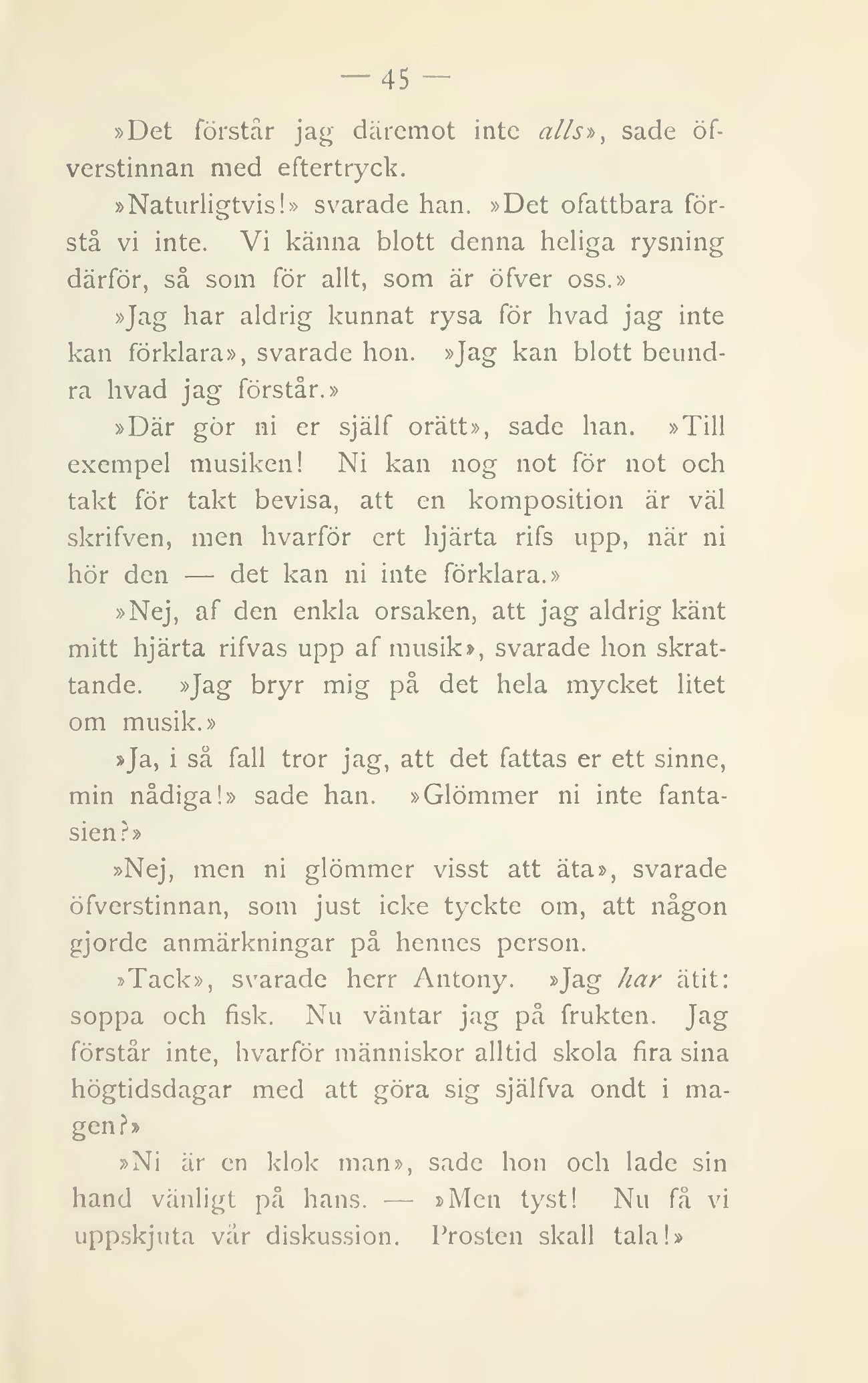 »Nej, af den enkla orsaken, att jag aldrig känt