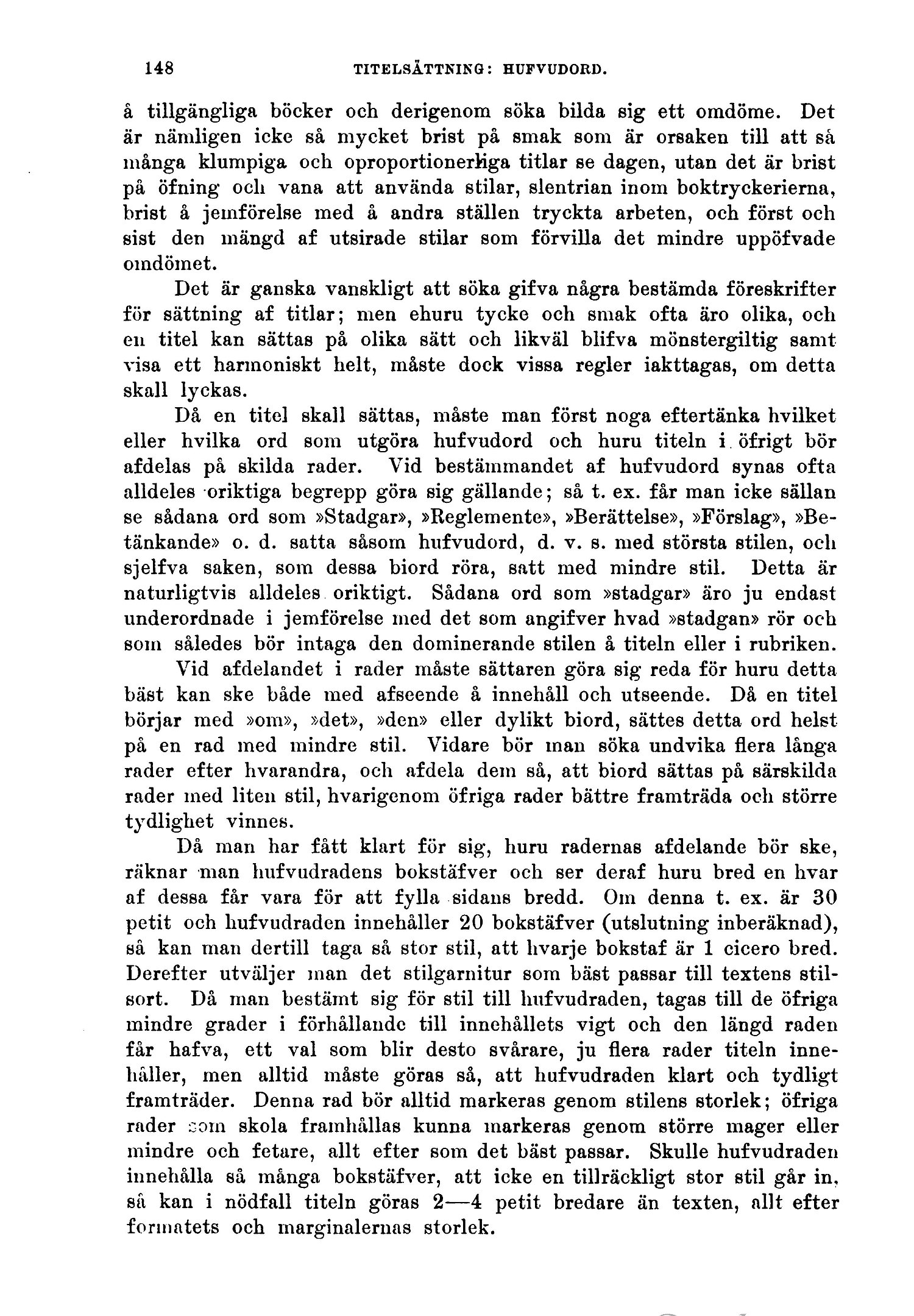 för sättning af titlar; men ehuru tycke och smak ofta äro olika, och