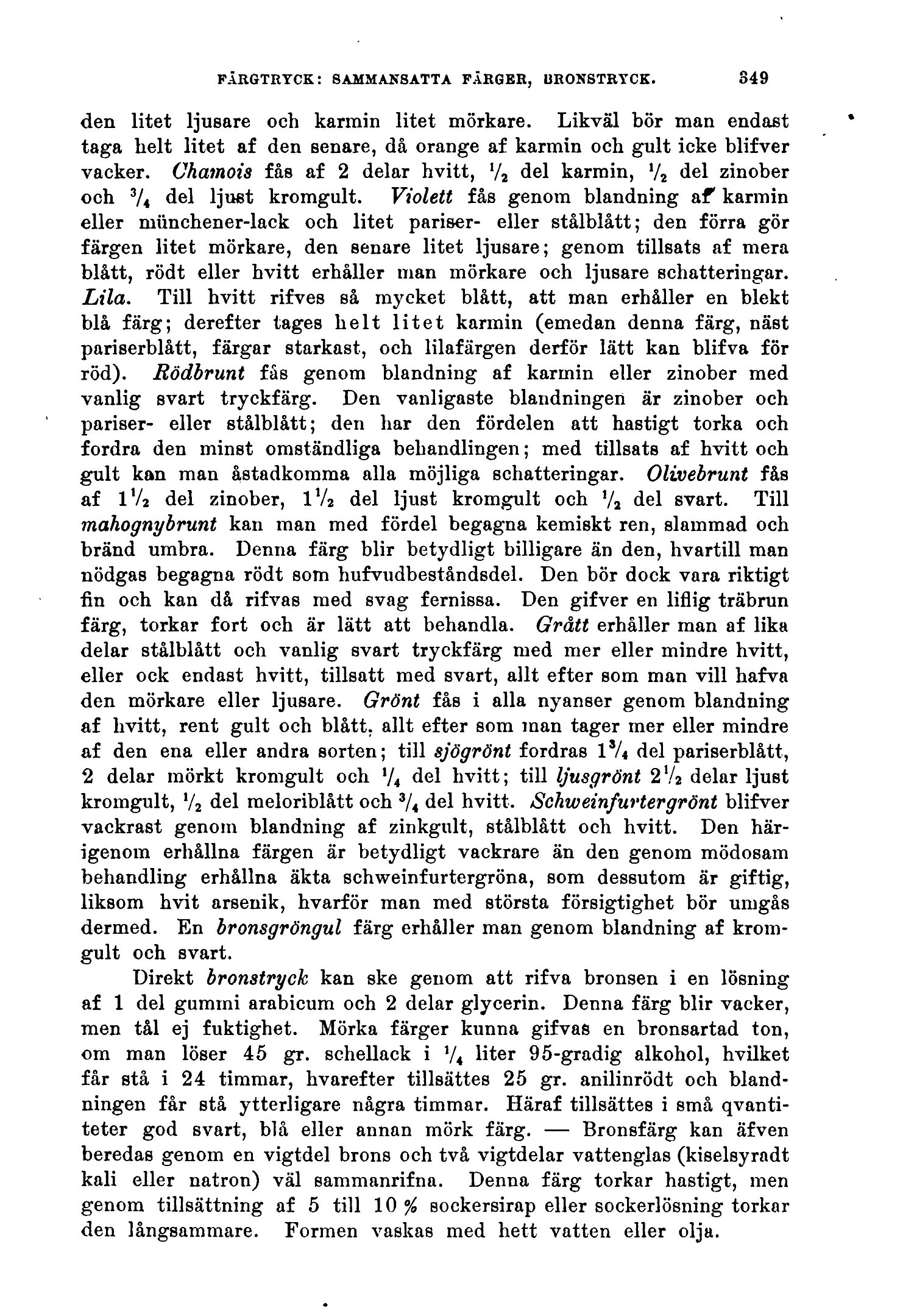 och 3/a del ljust kromgult. Violett fås genom blandning a t karmin