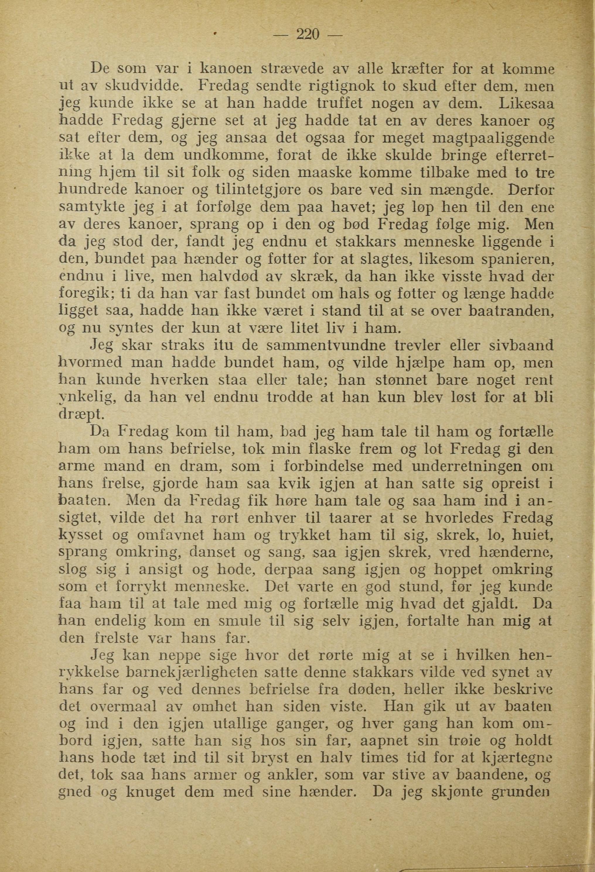 av deres kanoer, sprang op i den og bod Fredag folge mig. Men
