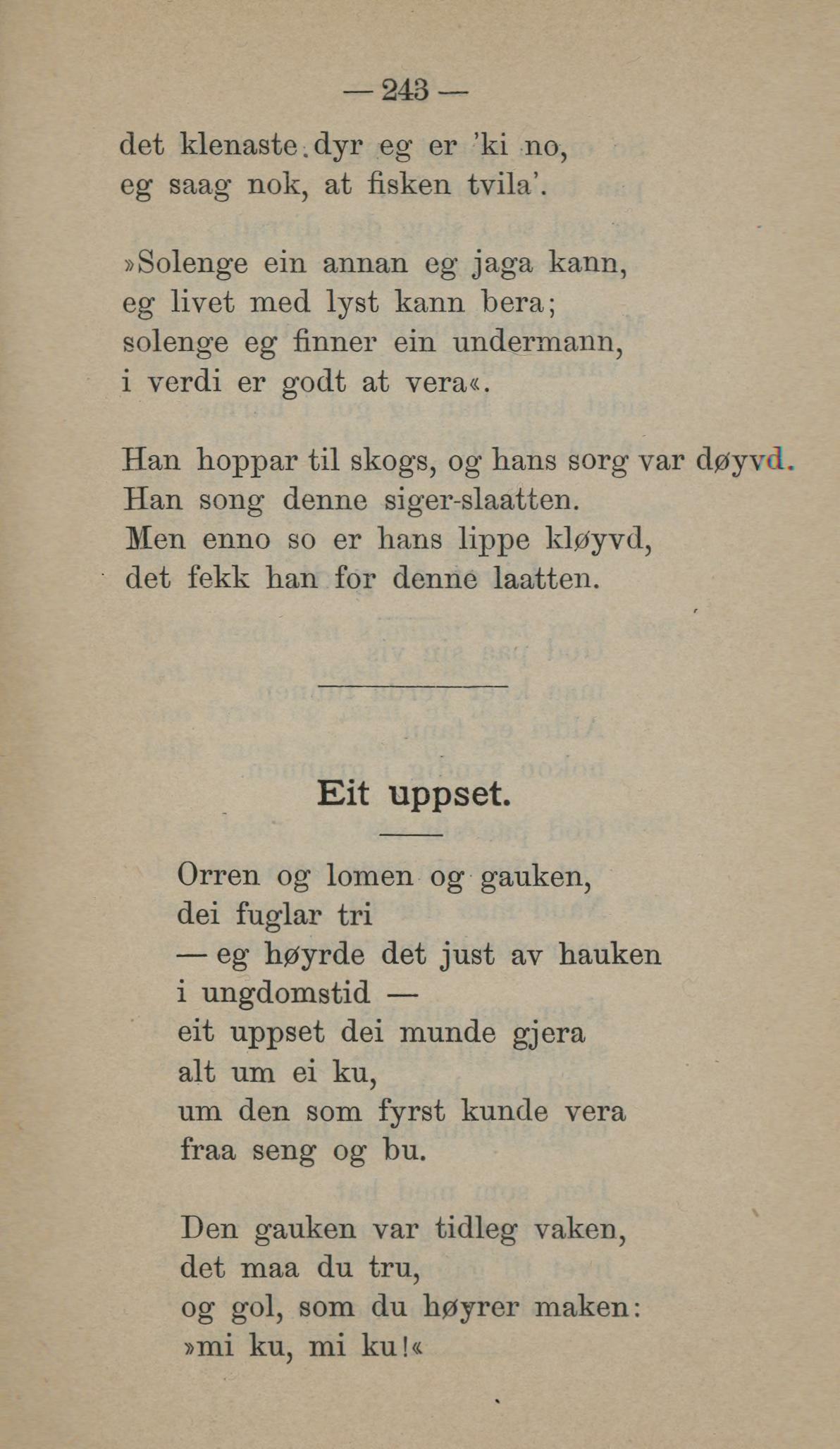 Han hoppar til skogs, og lians sorg var døyvd