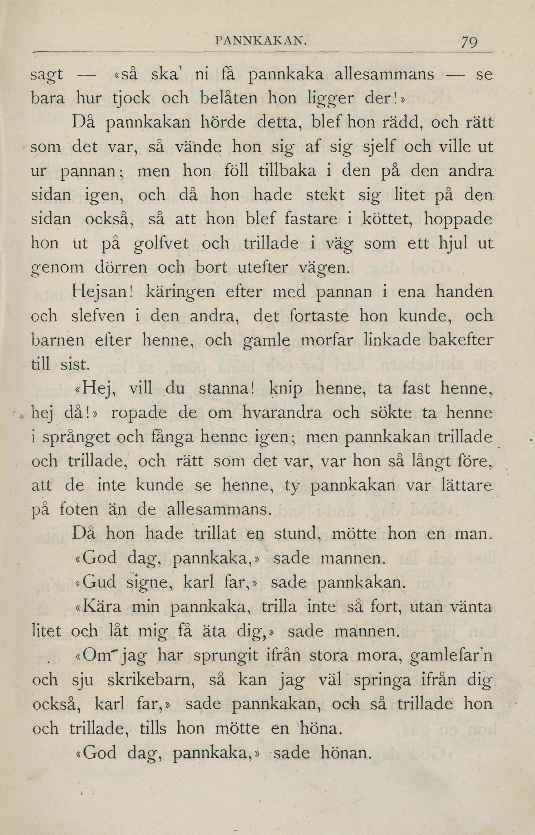 Då pannkakan hörde detta, blef hon rädd, och rätt